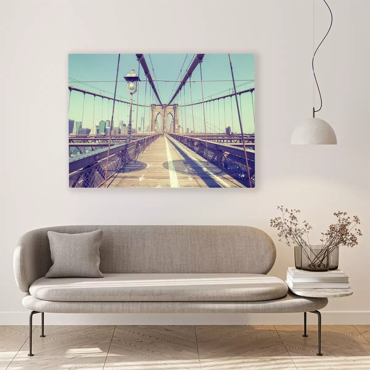Canvas: Vintage gestileerde foto van de Brooklyn Bridge, NYC.
