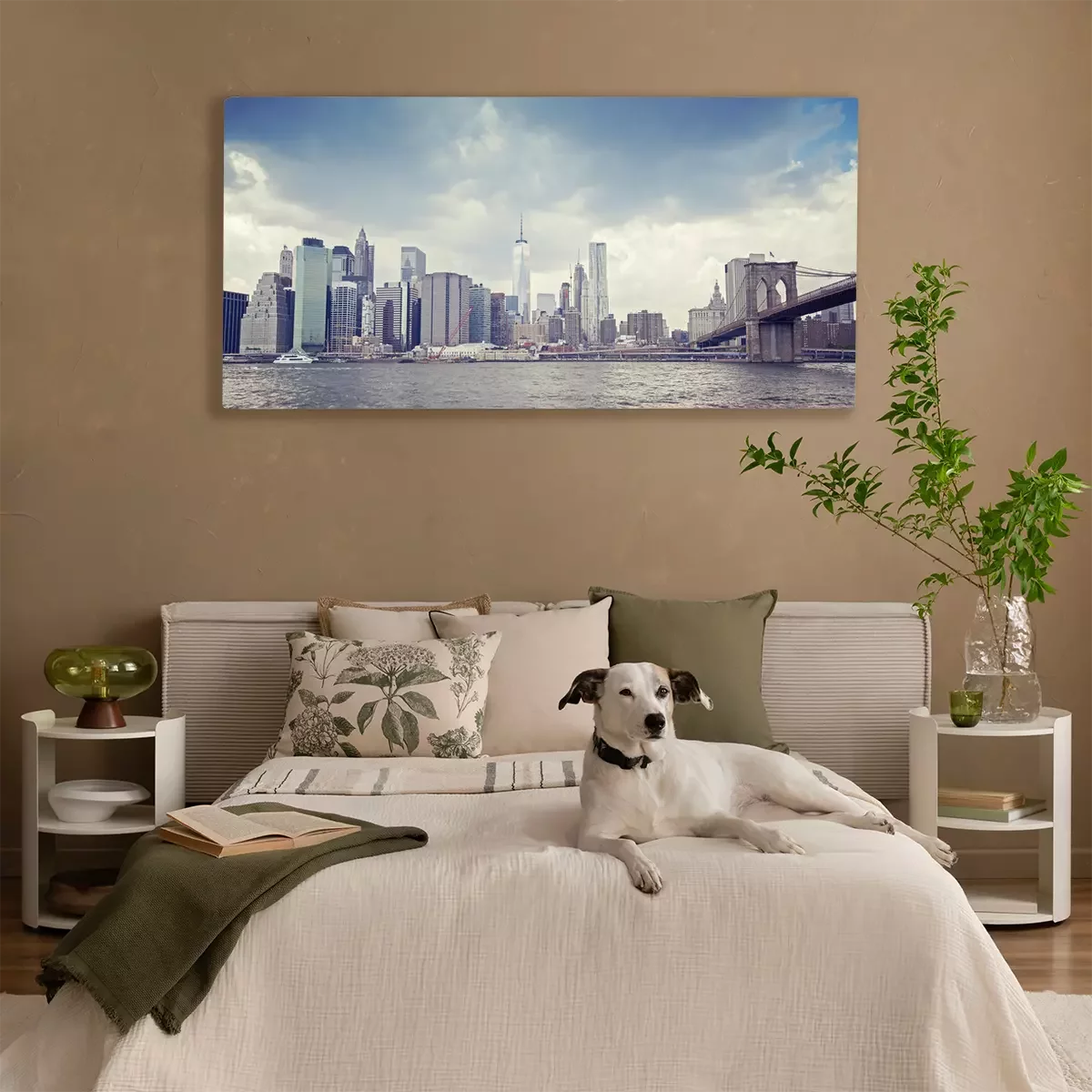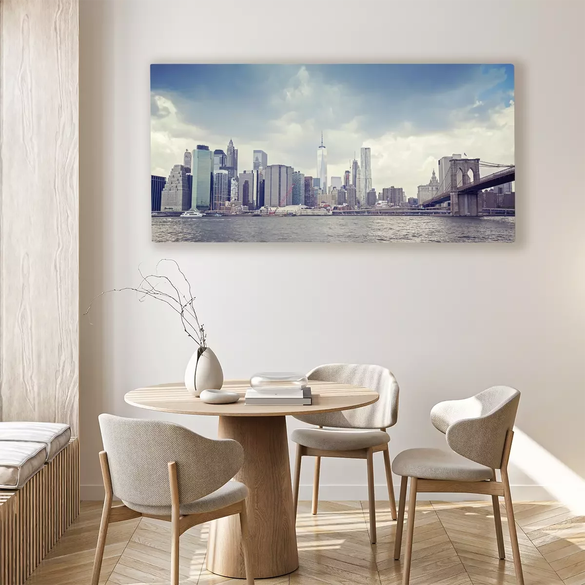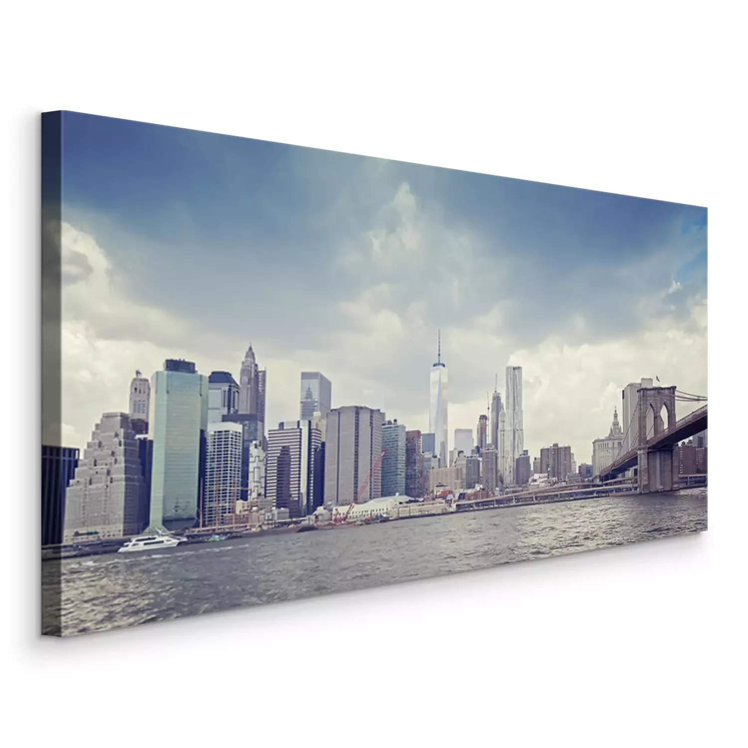 Canvas: Vintage getinte foto van New York aan het water voor de regen.
