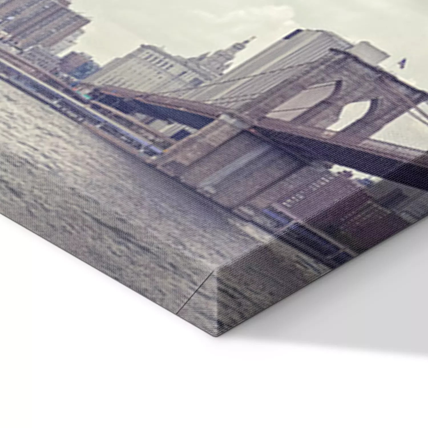 Canvas Vintage getinte foto van New York aan het water voor de regen.