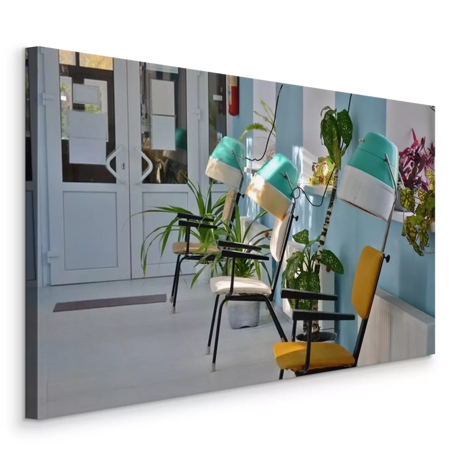 Canvas: Vintage haardrogers in de kamer van het zwembad in zonlicht