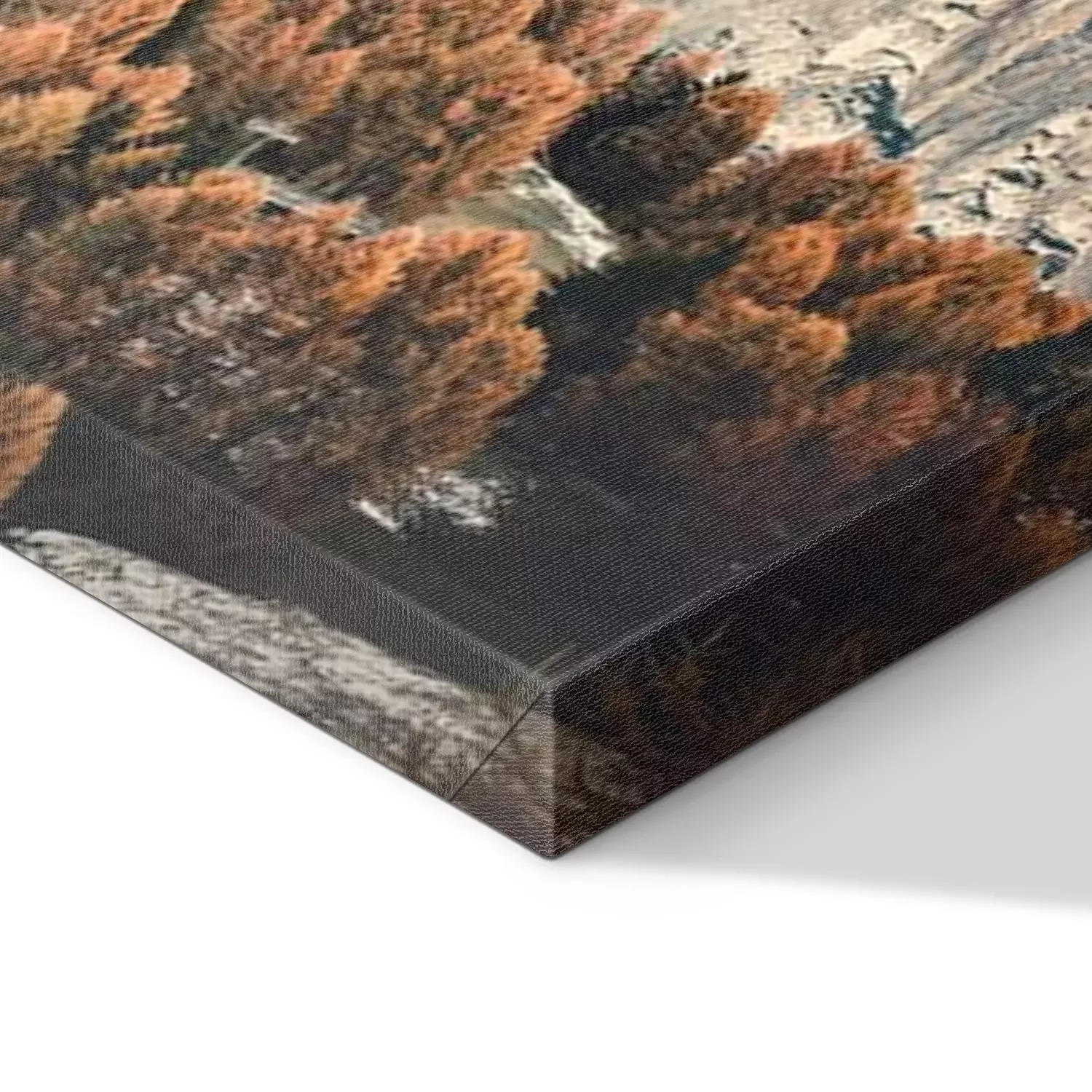 De print wordt aangebracht op hoogwaardig canvas dat op een schildersweefgetouw (spieraam) wordt gespannen. Omdat de print de zijranden bedekt, hoeft het ontwerp niet met een extra kader te worden omlijst. Wij raden ook composities aan die uit meerdere foto's bestaan en zo een coherente compositie vormen.