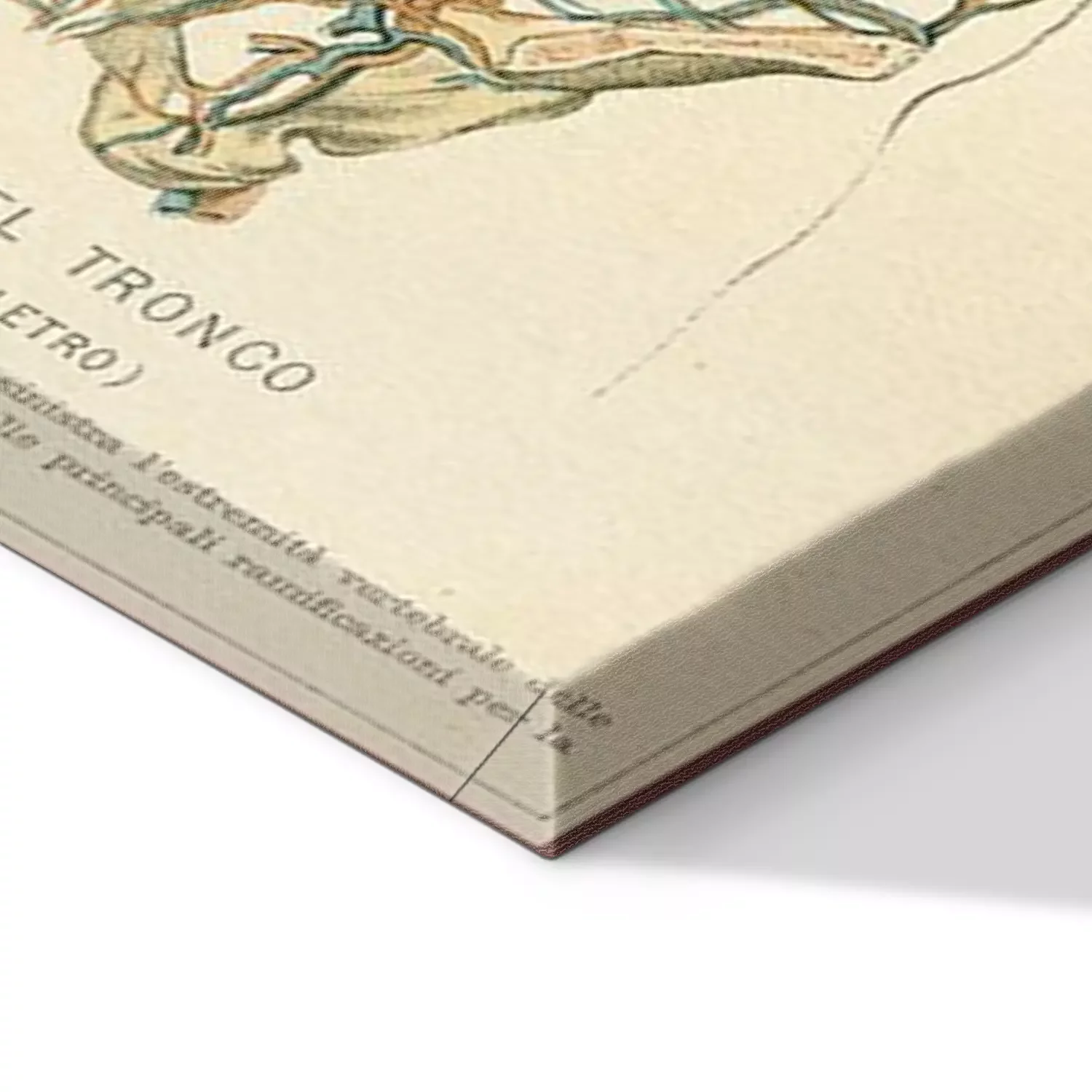 Canvas Vintage kleurentabel van anatomie, buik grote bloedvaten met skelet, Italiaanse anatomische beschrijvingen