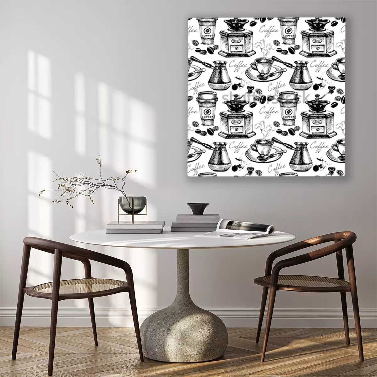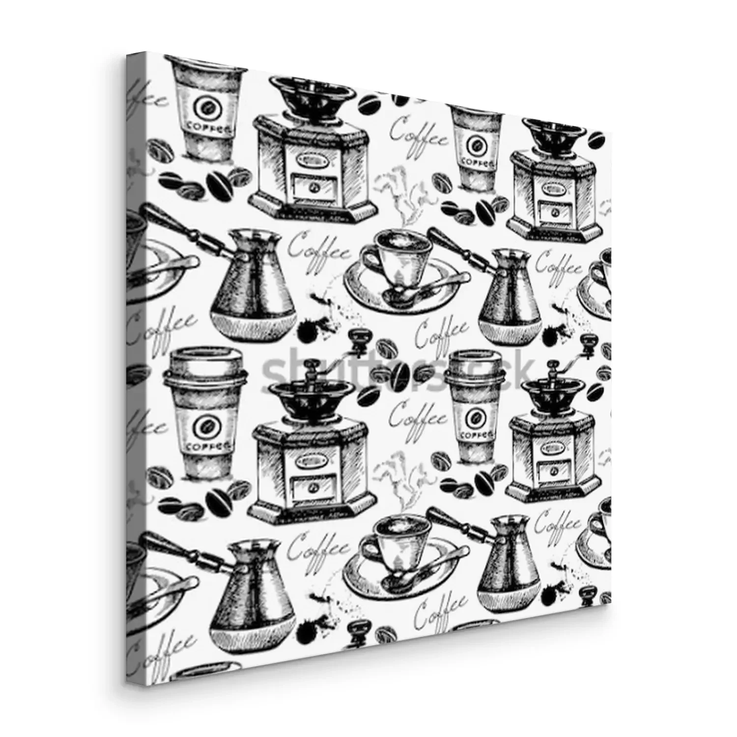 Canvas: Vintage koffie naadloze patroon. Hand getrokken getoond