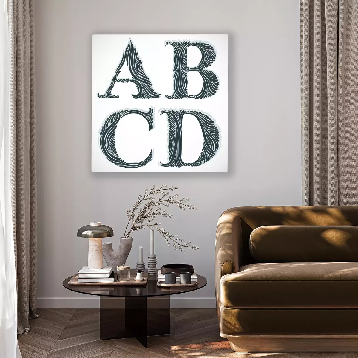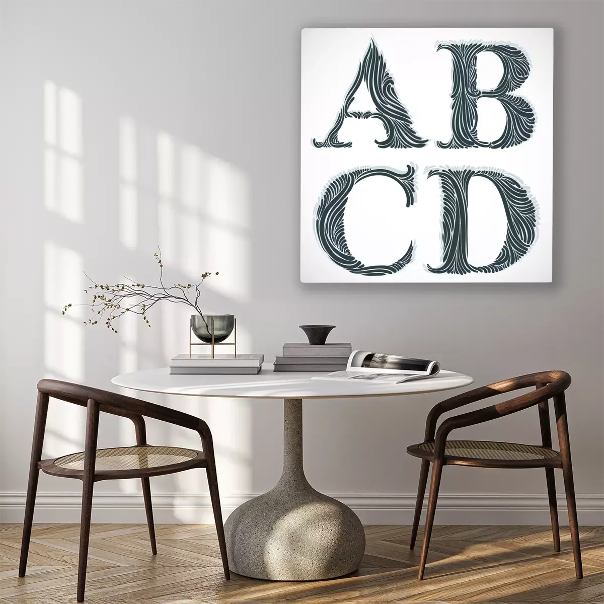 Canvas: Vintage letters A B C D.