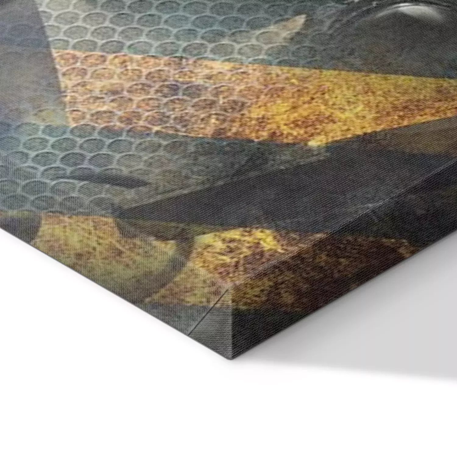 De print wordt aangebracht op hoogwaardig canvas dat op een schildersweefgetouw (spieraam) wordt gespannen. Omdat de print de zijranden bedekt, hoeft het ontwerp niet met een extra kader te worden omlijst. Wij raden ook composities aan die uit meerdere foto's bestaan en zo een coherente compositie vormen.