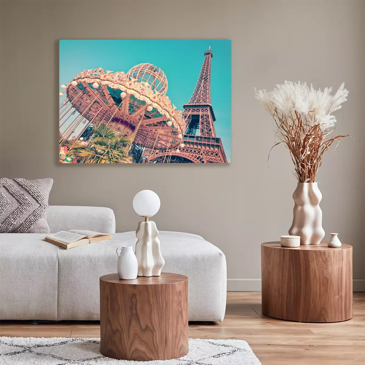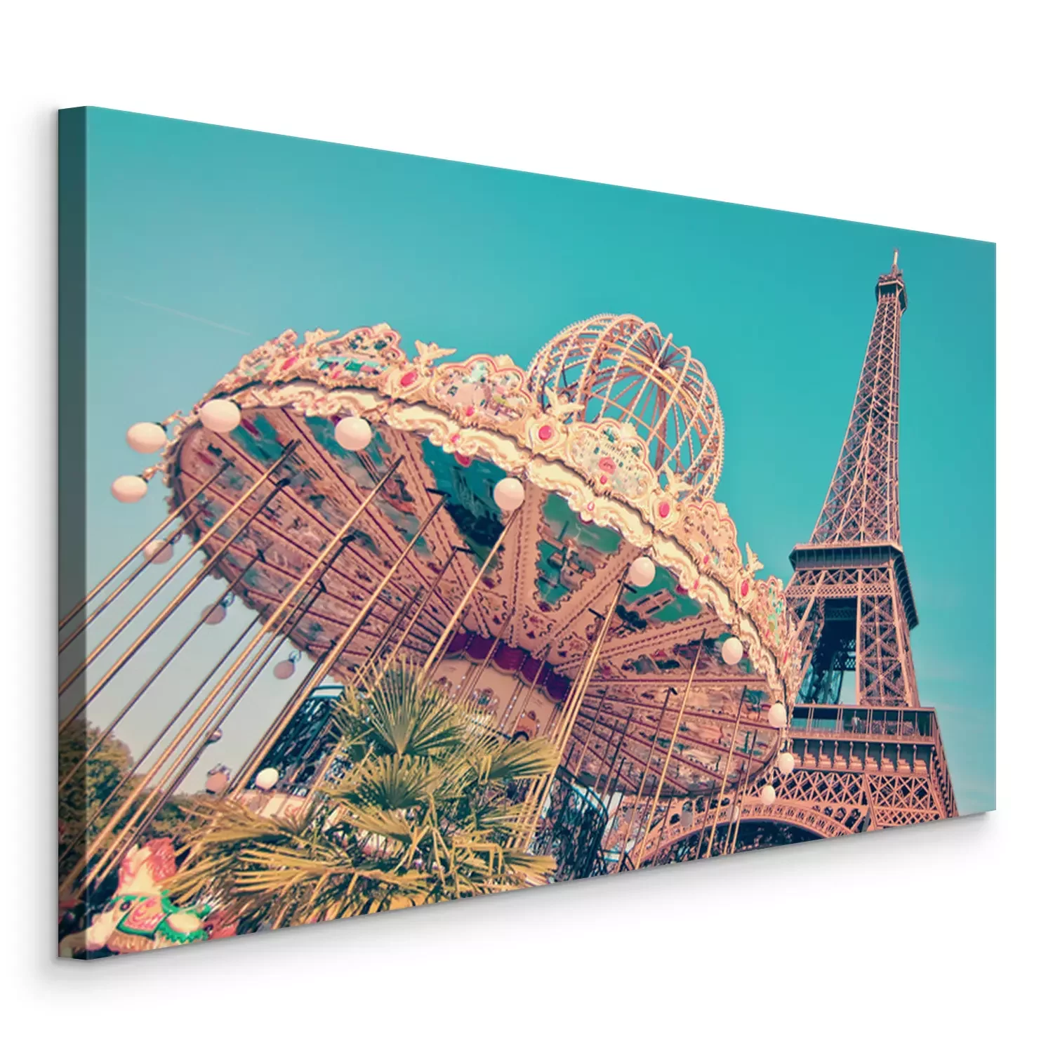 Canvas: Vintage merry-go-round en de Eiffeltoren, Parijs Frankrijk