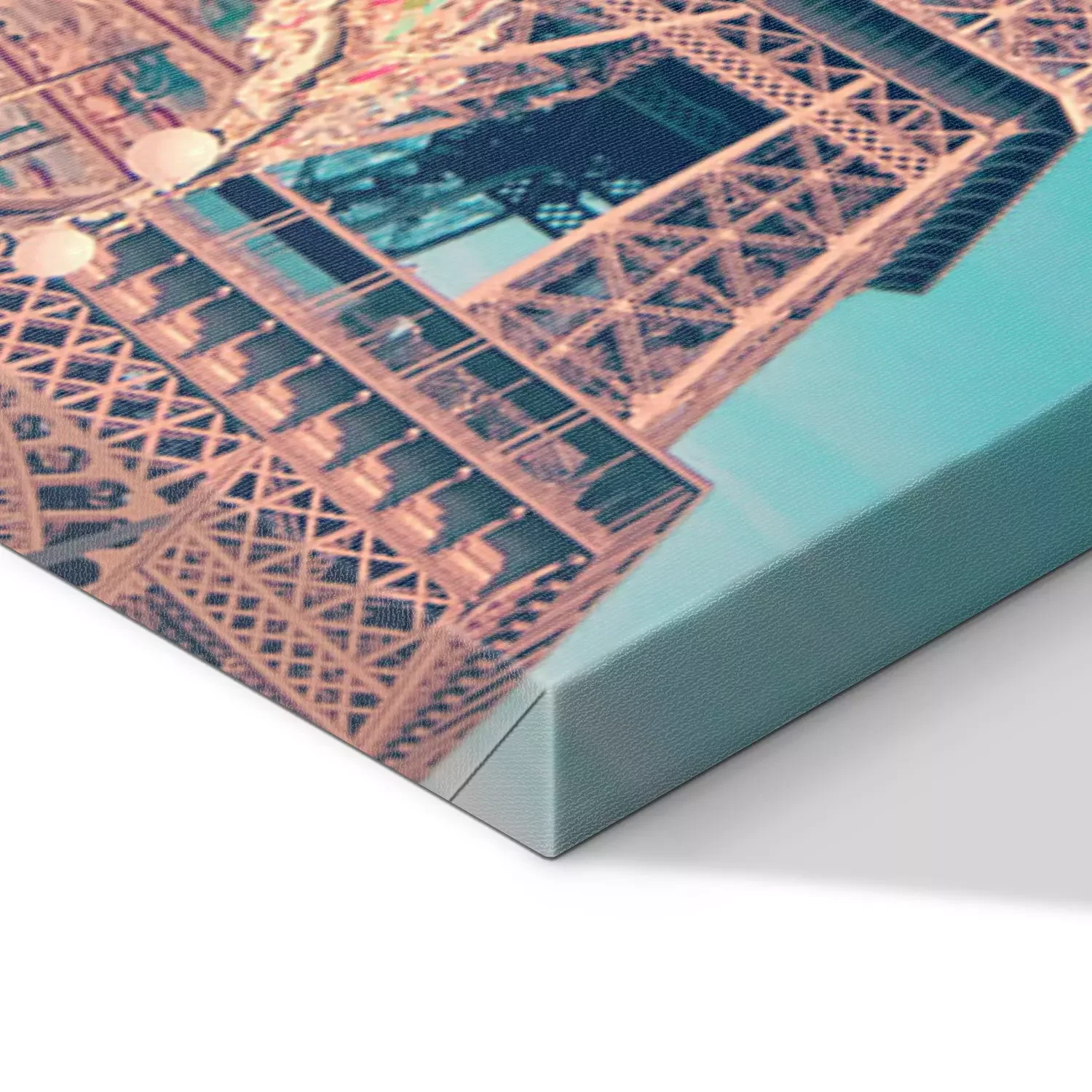 De print wordt aangebracht op hoogwaardig canvas dat op een schildersweefgetouw (spieraam) wordt gespannen. Omdat de print de zijranden bedekt, hoeft het ontwerp niet met een extra kader te worden omlijst. Wij raden ook composities aan die uit meerdere foto's bestaan en zo een coherente compositie vormen.