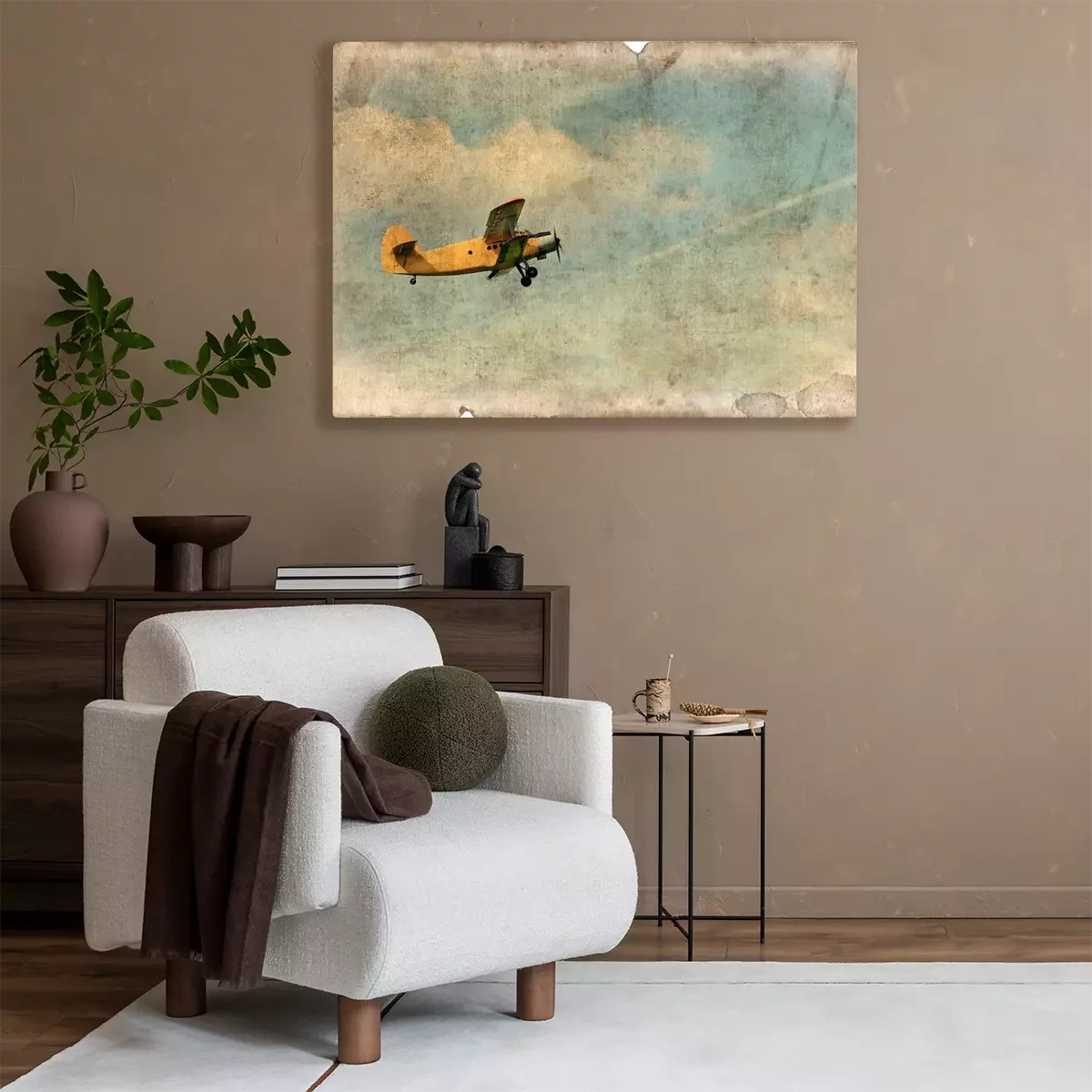 Canvas Vintage militaire postkaart geïsoleerde, vliegende tweedekker