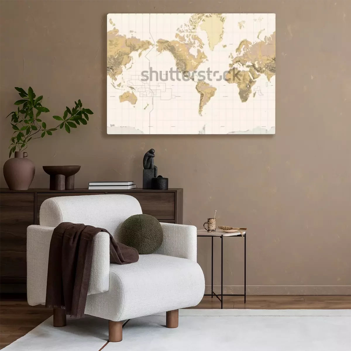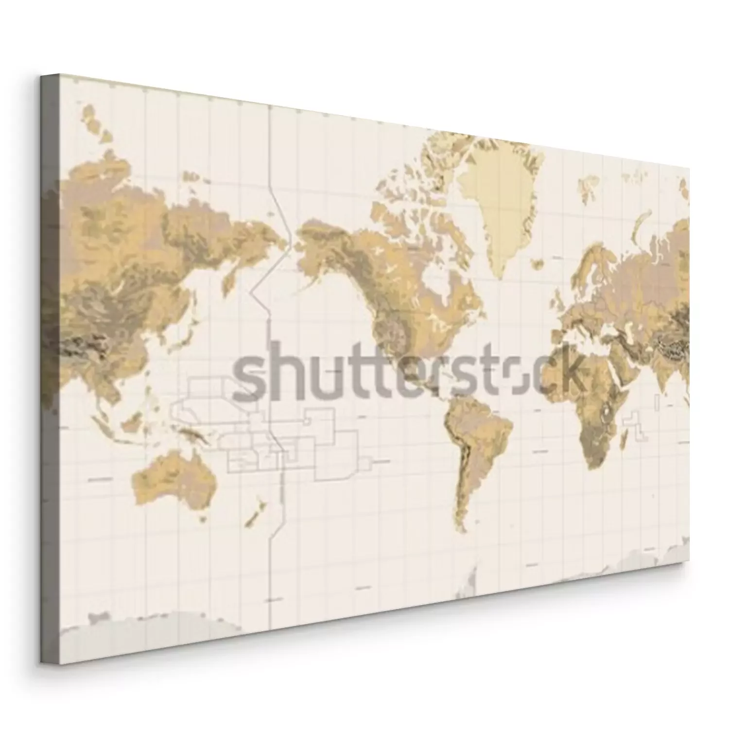 Canvas Vintage Physical World Map-America Centered-Colors of Brown. No bathymetry and text. Vector illustration.