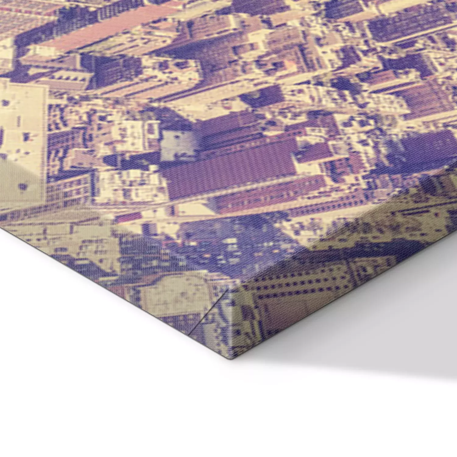 De print wordt aangebracht op hoogwaardig canvas dat op een schildersweefgetouw (spieraam) wordt gespannen. Omdat de print de zijranden bedekt, hoeft het ontwerp niet met een extra kader te worden omlijst. Wij raden ook composities aan die uit meerdere foto's bestaan en zo een coherente compositie vormen.