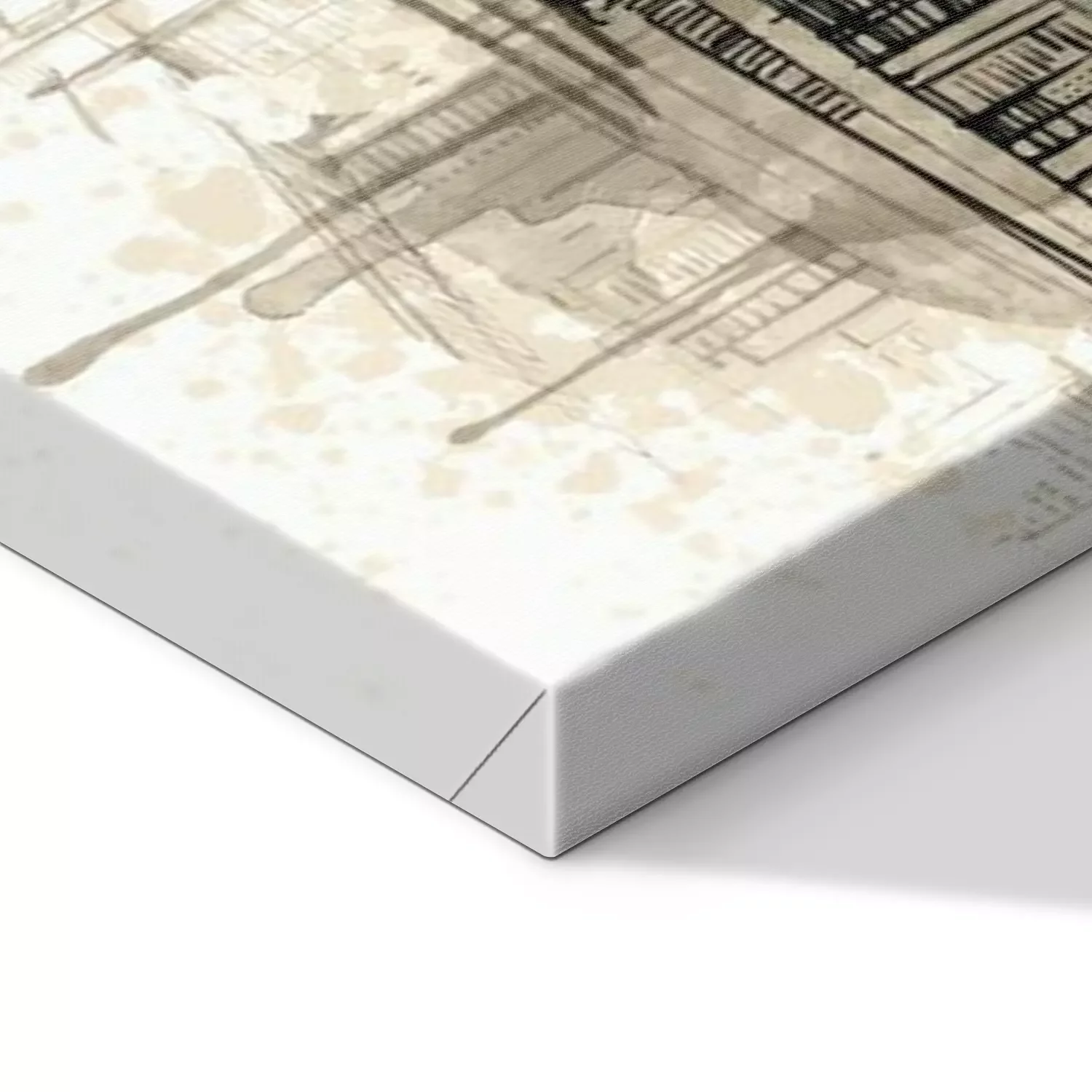 De print wordt aangebracht op hoogwaardig canvas dat op een schildersweefgetouw (spieraam) wordt gespannen. Omdat de print de zijranden bedekt, hoeft het ontwerp niet met een extra kader te worden omlijst. Wij raden ook composities aan die uit meerdere foto's bestaan en zo een coherente compositie vormen.