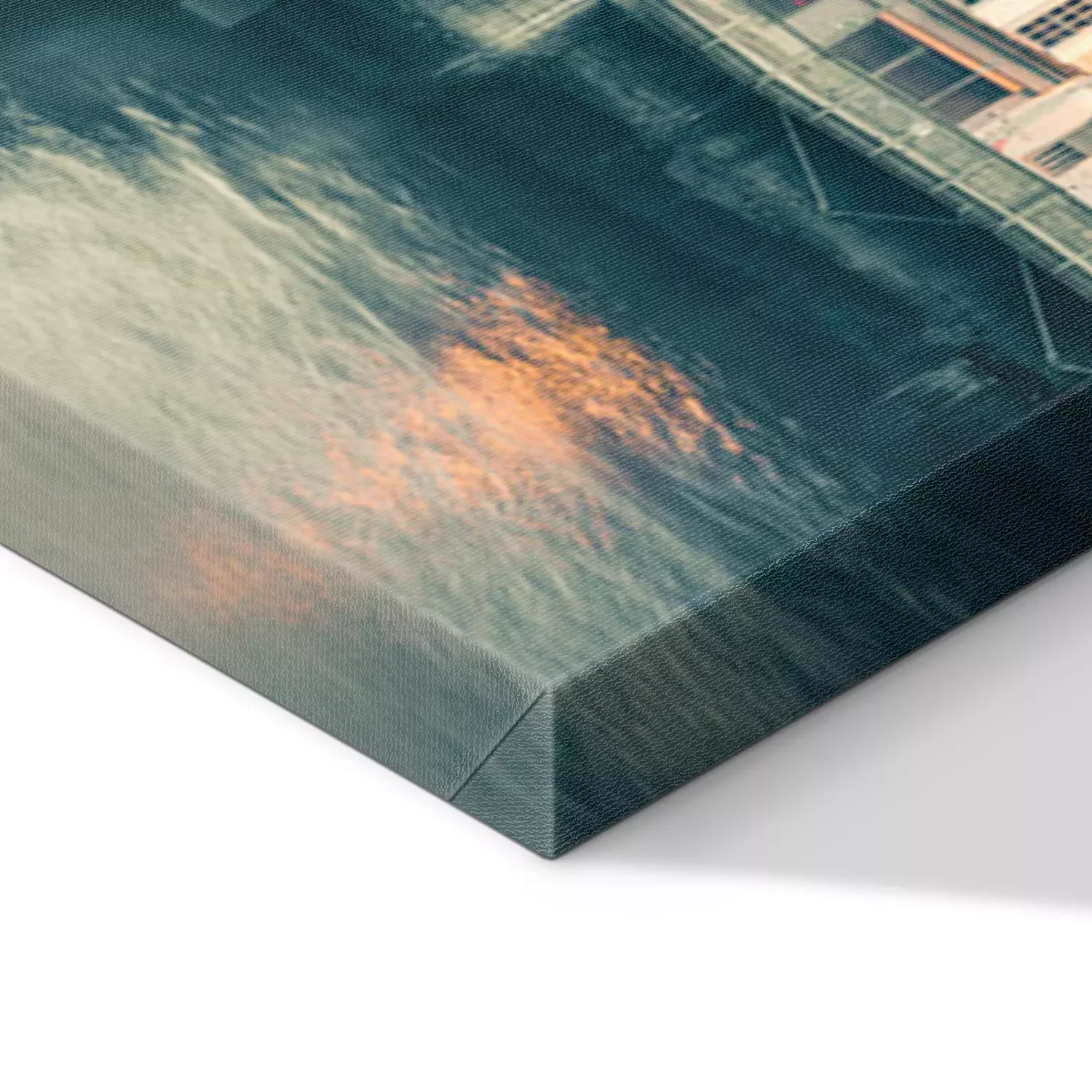 De print wordt aangebracht op hoogwaardig canvas dat op een schildersweefgetouw (spieraam) wordt gespannen. Omdat de print de zijranden bedekt, hoeft het ontwerp niet met een extra kader te worden omlijst. Wij raden ook composities aan die uit meerdere foto's bestaan en zo een coherente compositie vormen.