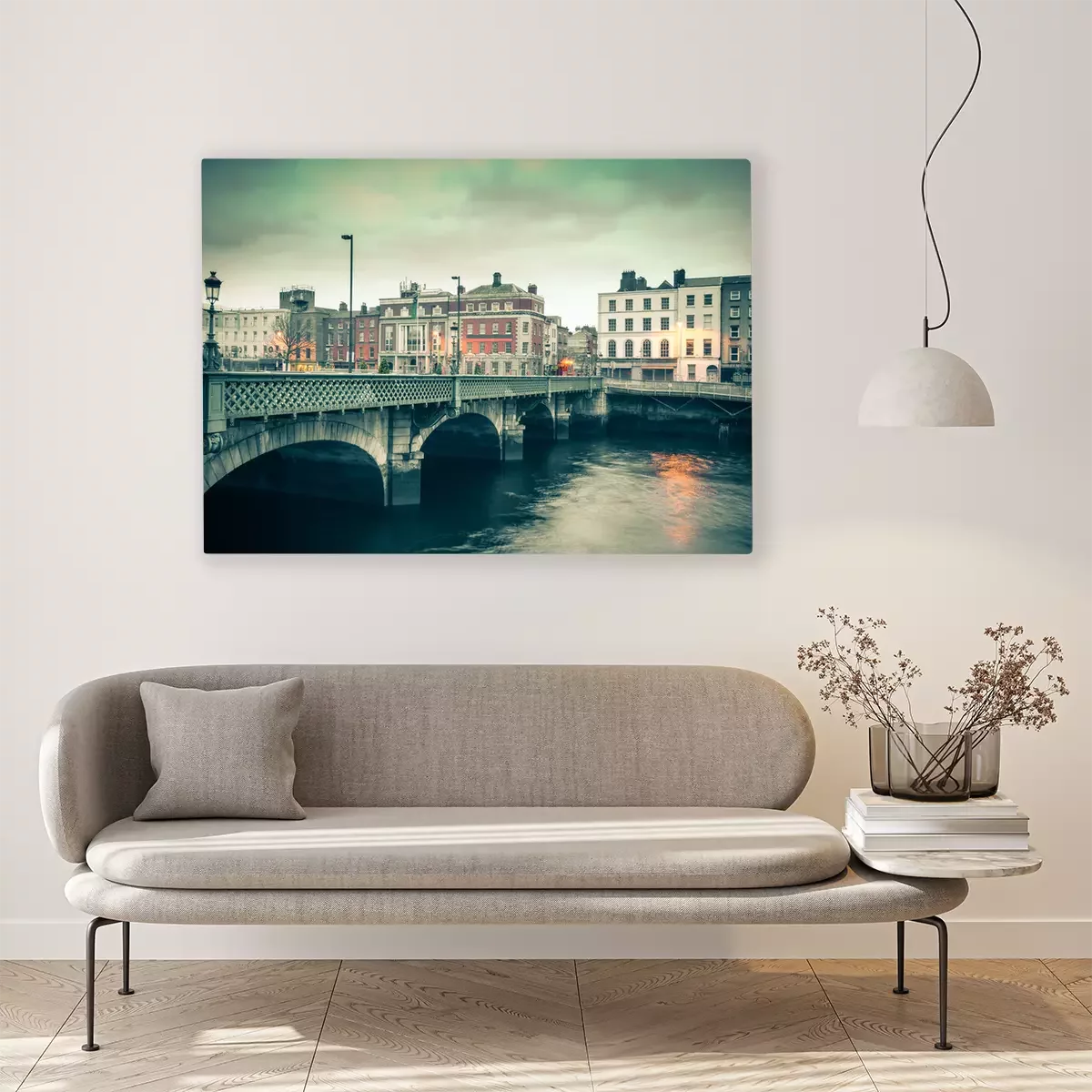 Canvas Vintage stijl beeld van Dublin Ierland Grattan Bridge