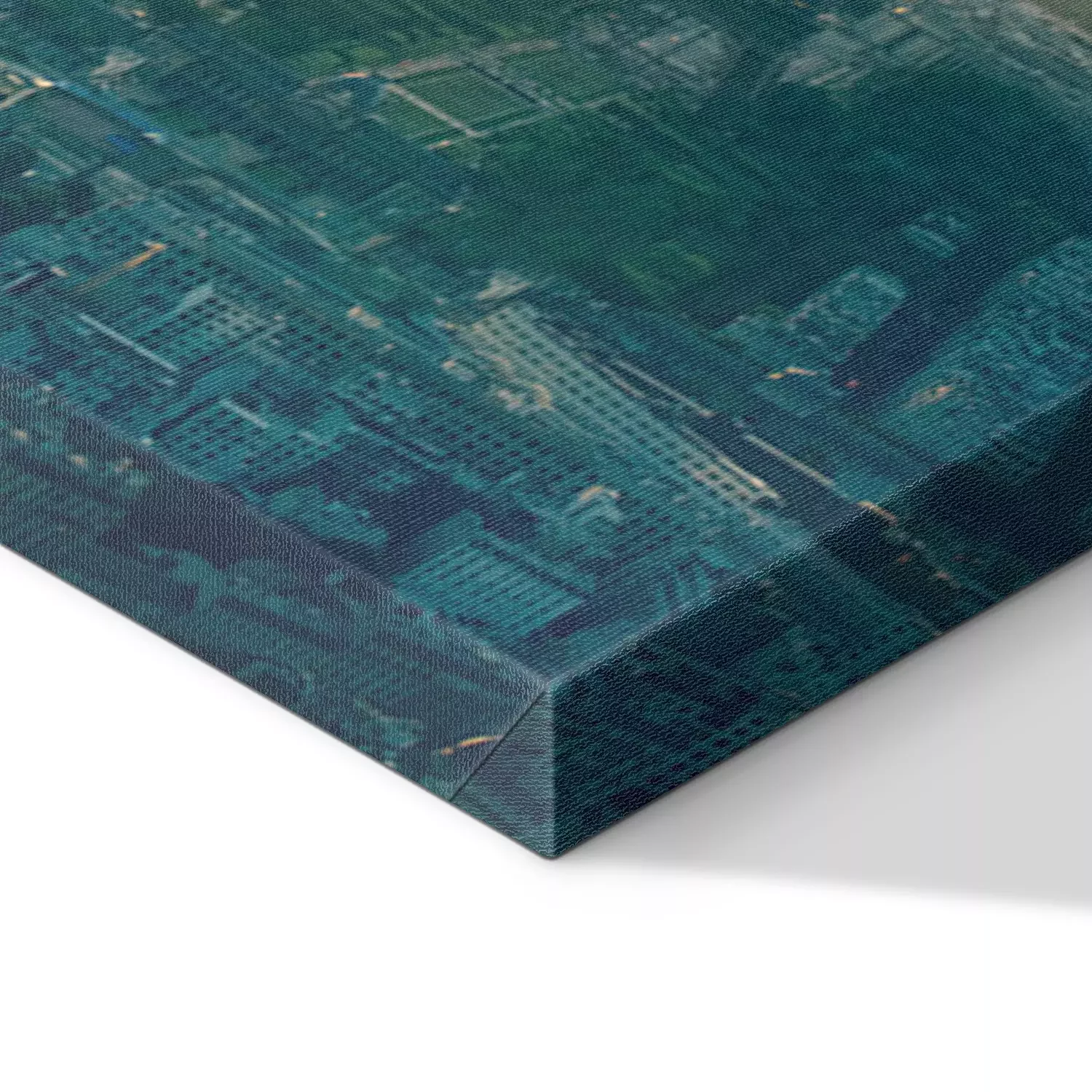 De print wordt aangebracht op hoogwaardig canvas dat op een schildersweefgetouw (spieraam) wordt gespannen. Omdat de print de zijranden bedekt, hoeft het ontwerp niet met een extra kader te worden omlijst. Wij raden ook composities aan die uit meerdere foto's bestaan en zo een coherente compositie vormen.