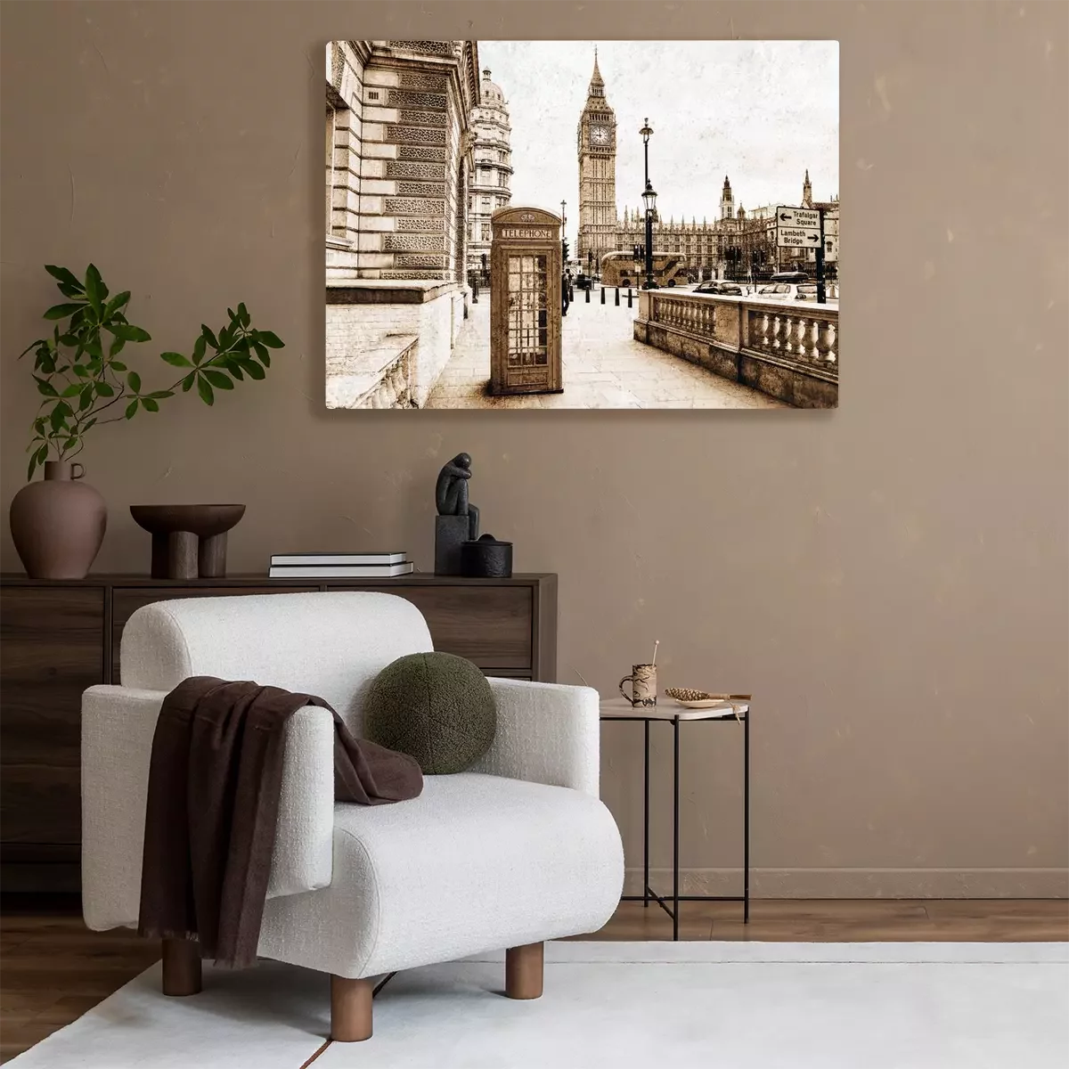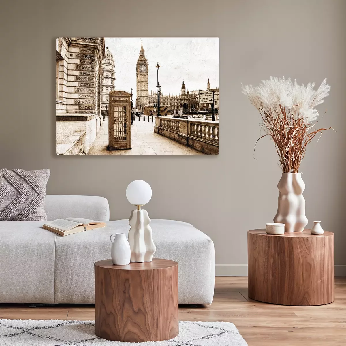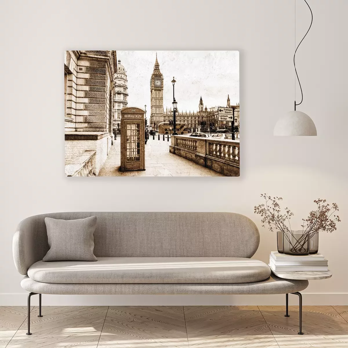 Vintage telefooncel met panoramisch uitzicht op de klokkentoren