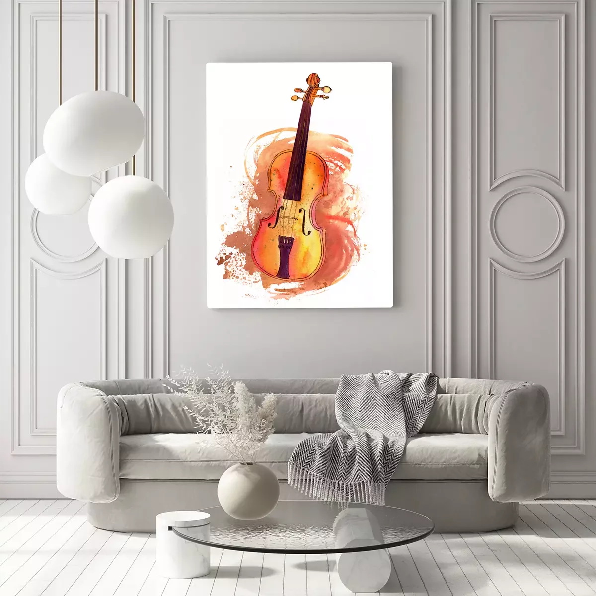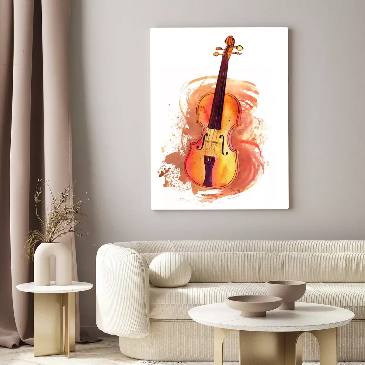 Canvas: Vintage viool met aquarel textuur en copyspace