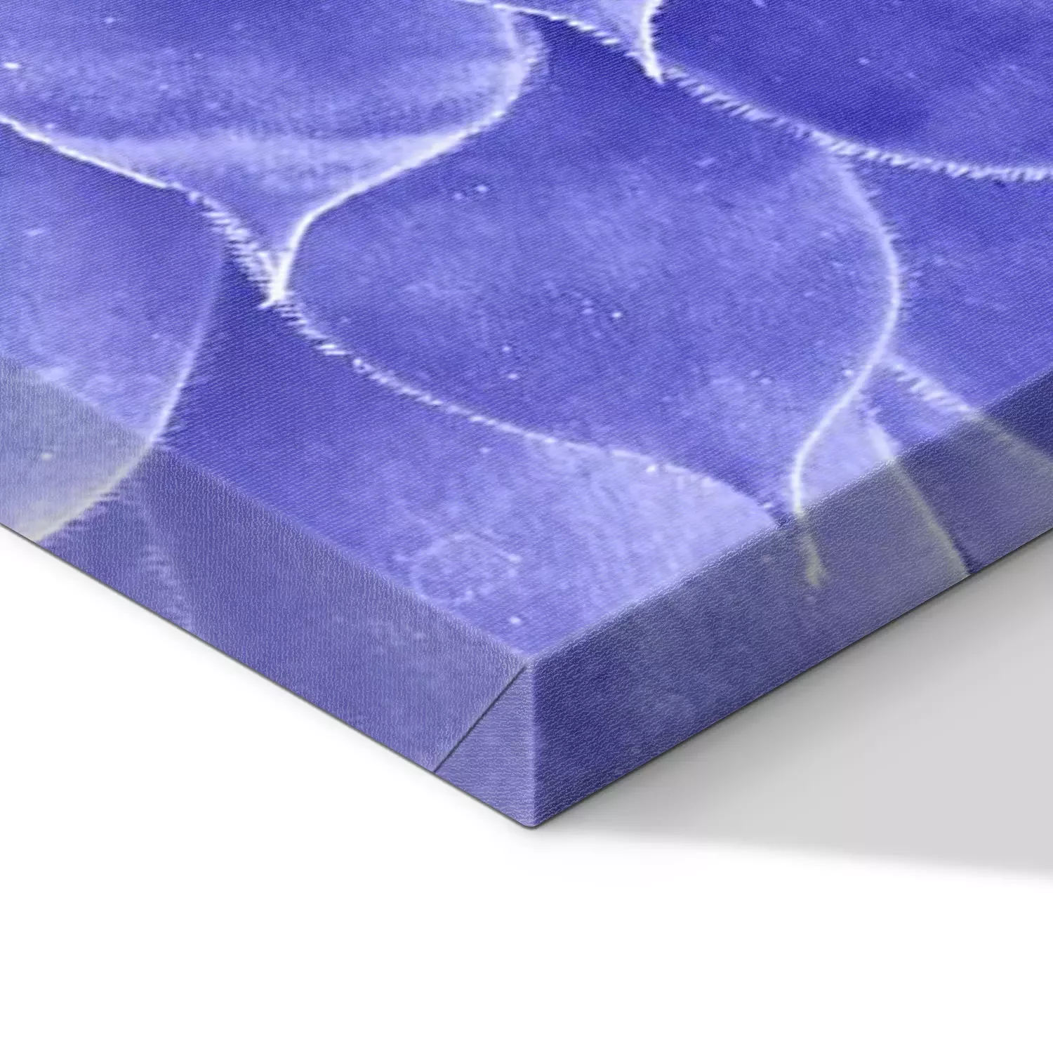 De print wordt aangebracht op hoogwaardig canvas dat op een schildersweefgetouw (spieraam) wordt gespannen. Omdat de print de zijranden bedekt, hoeft het ontwerp niet met een extra kader te worden omlijst. Wij raden ook composities aan die uit meerdere foto's bestaan en zo een coherente compositie vormen.