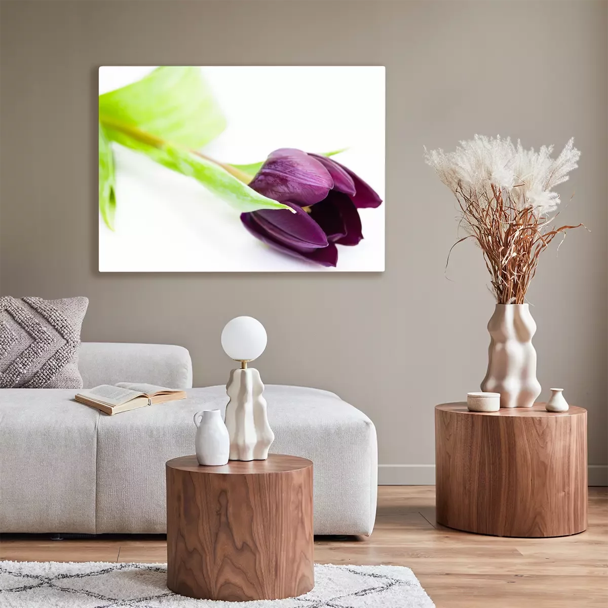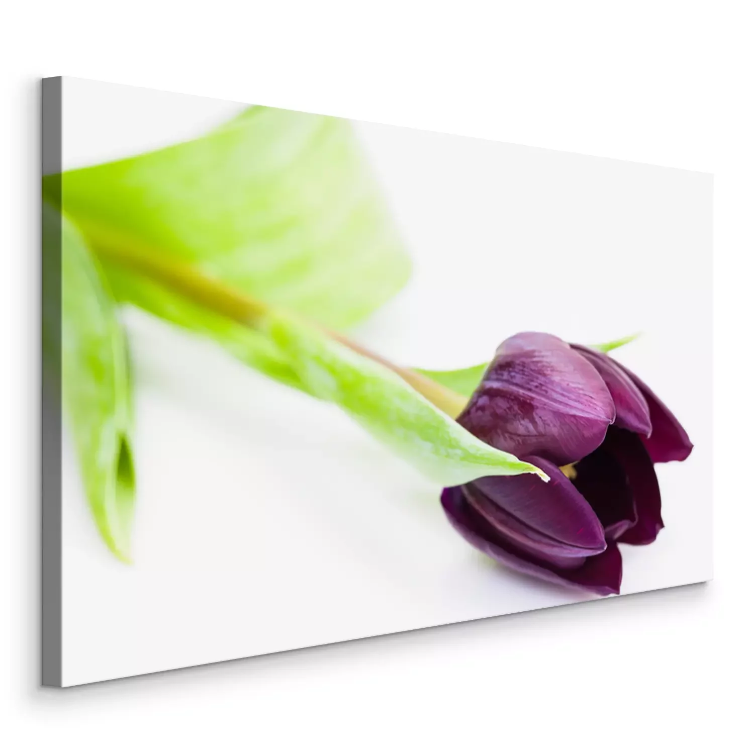 Canvas: Violet Tulip bloem op een witte achtergrond met ruimte voor tekst