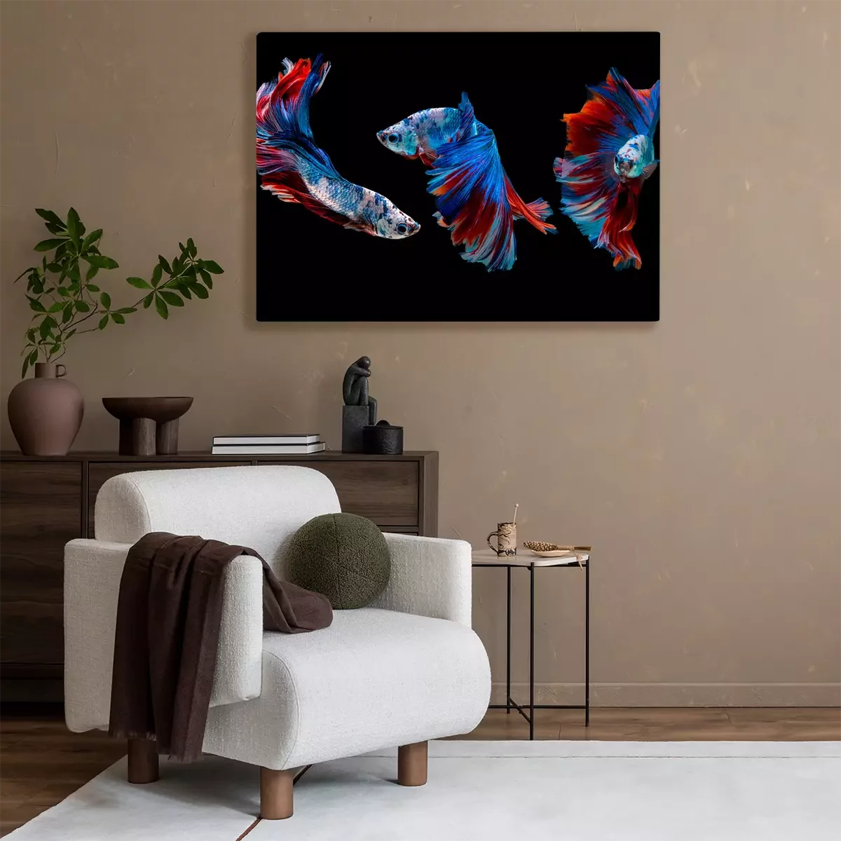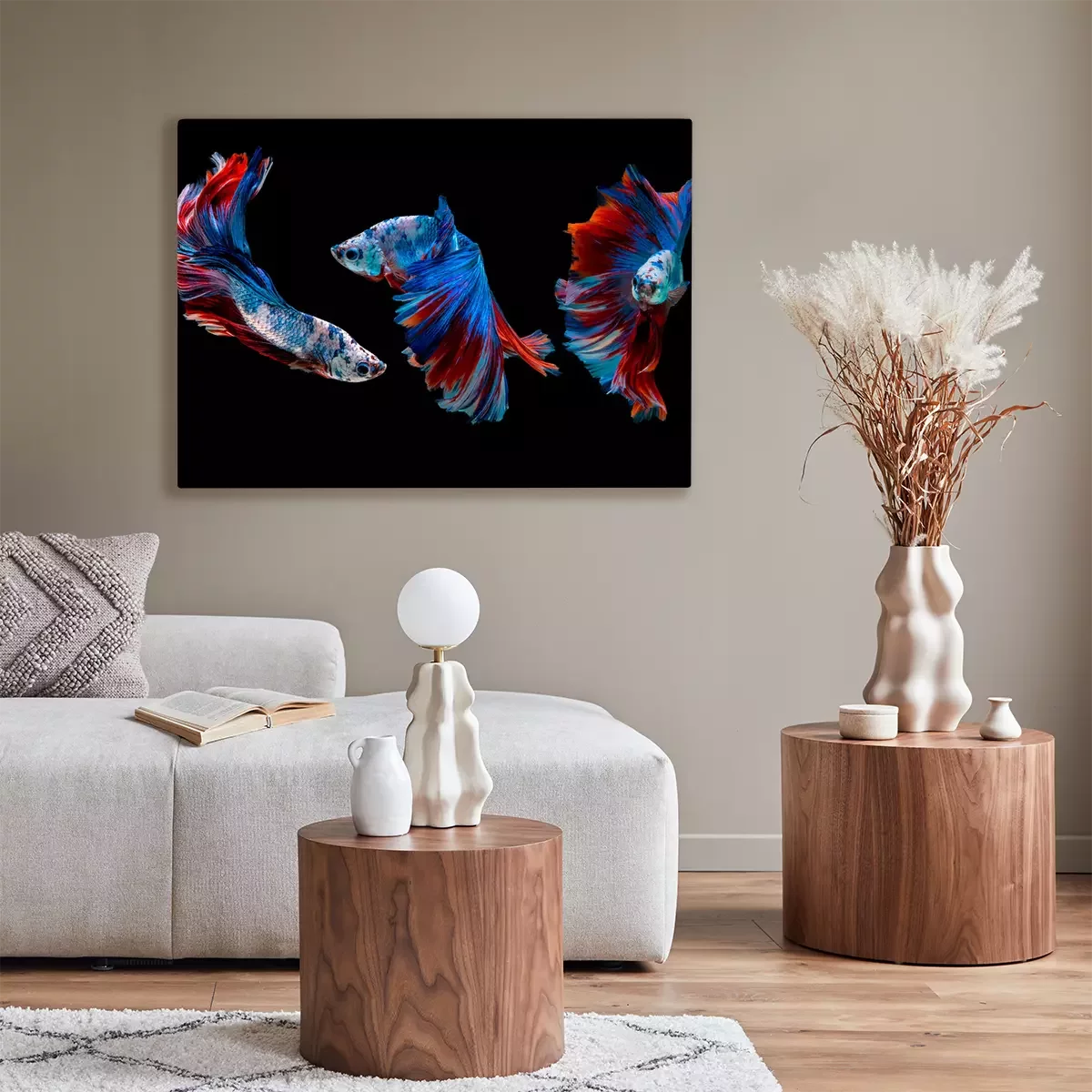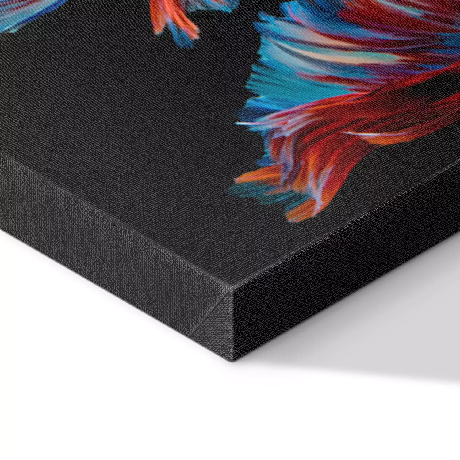 De print wordt aangebracht op hoogwaardig canvas dat op een schildersweefgetouw (spieraam) wordt gespannen. Omdat de print de zijranden bedekt, hoeft het ontwerp niet met een extra kader te worden omlijst. Wij raden ook composities aan die uit meerdere foto's bestaan en zo een coherente compositie vormen.