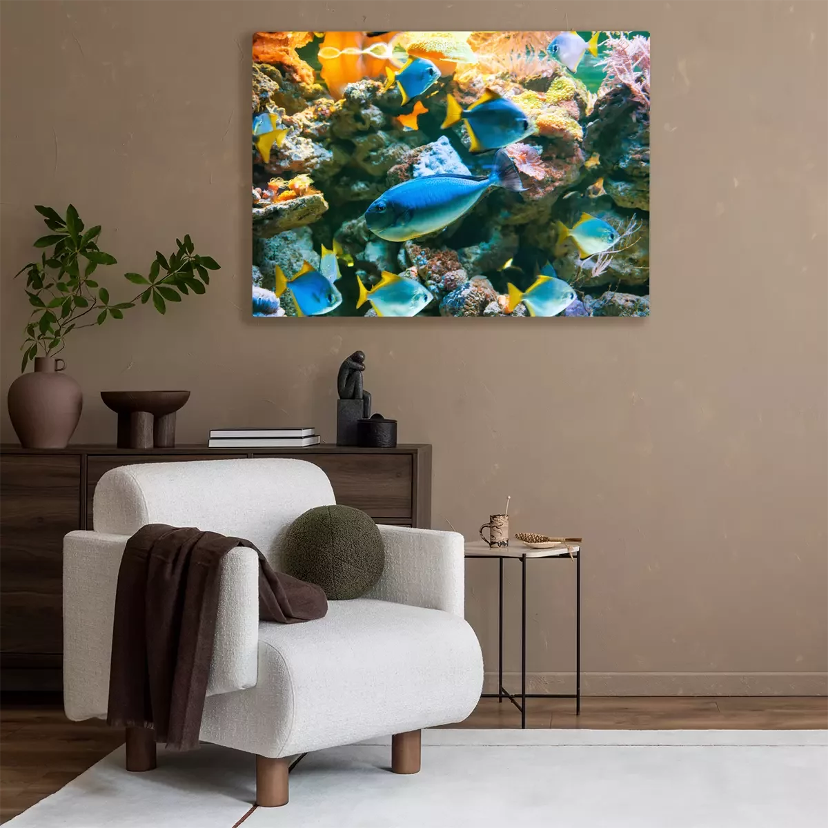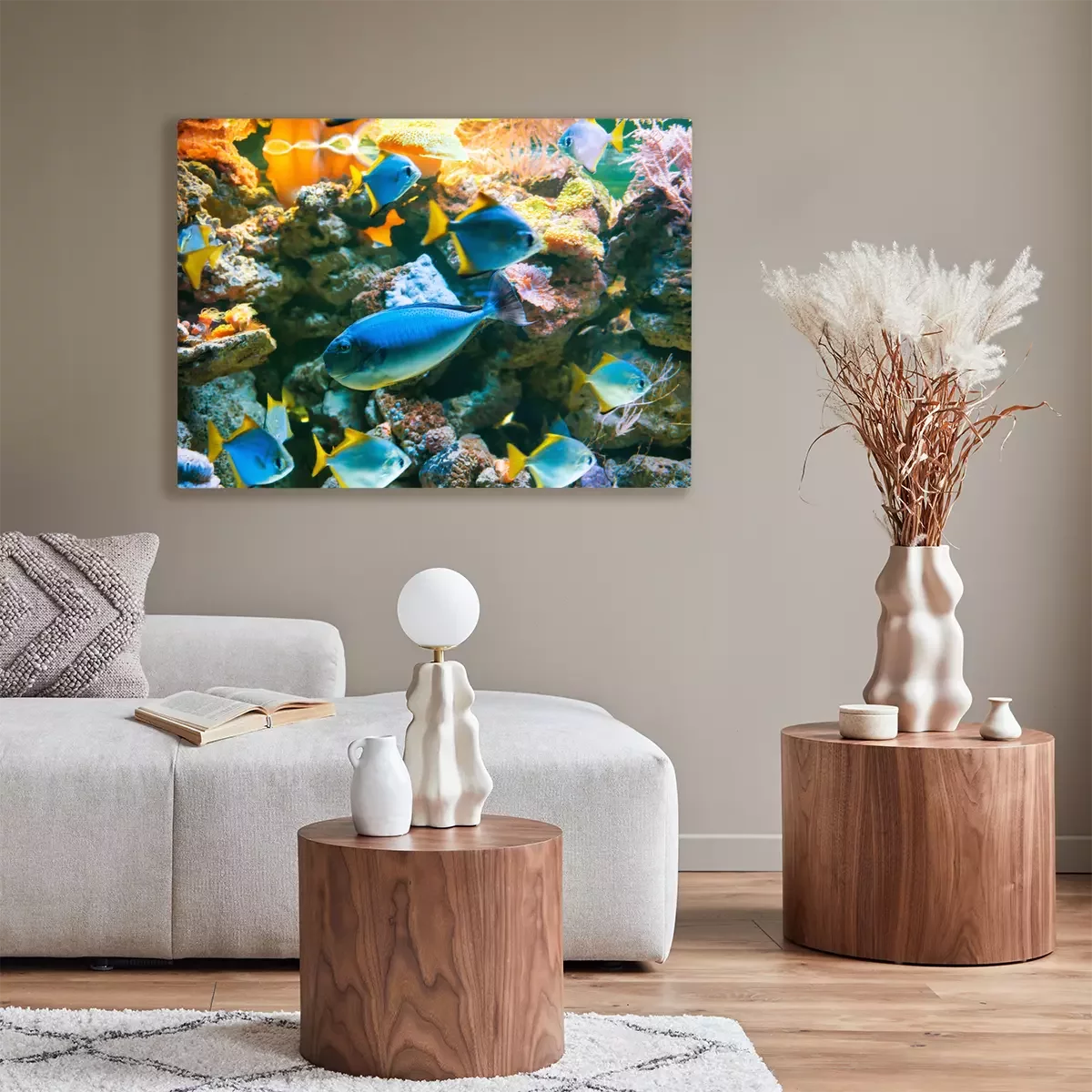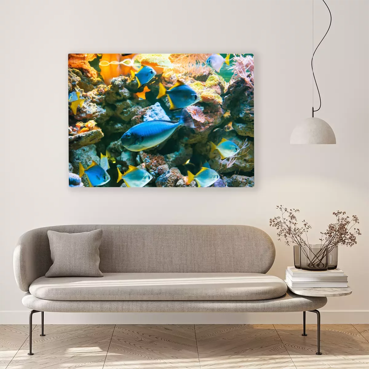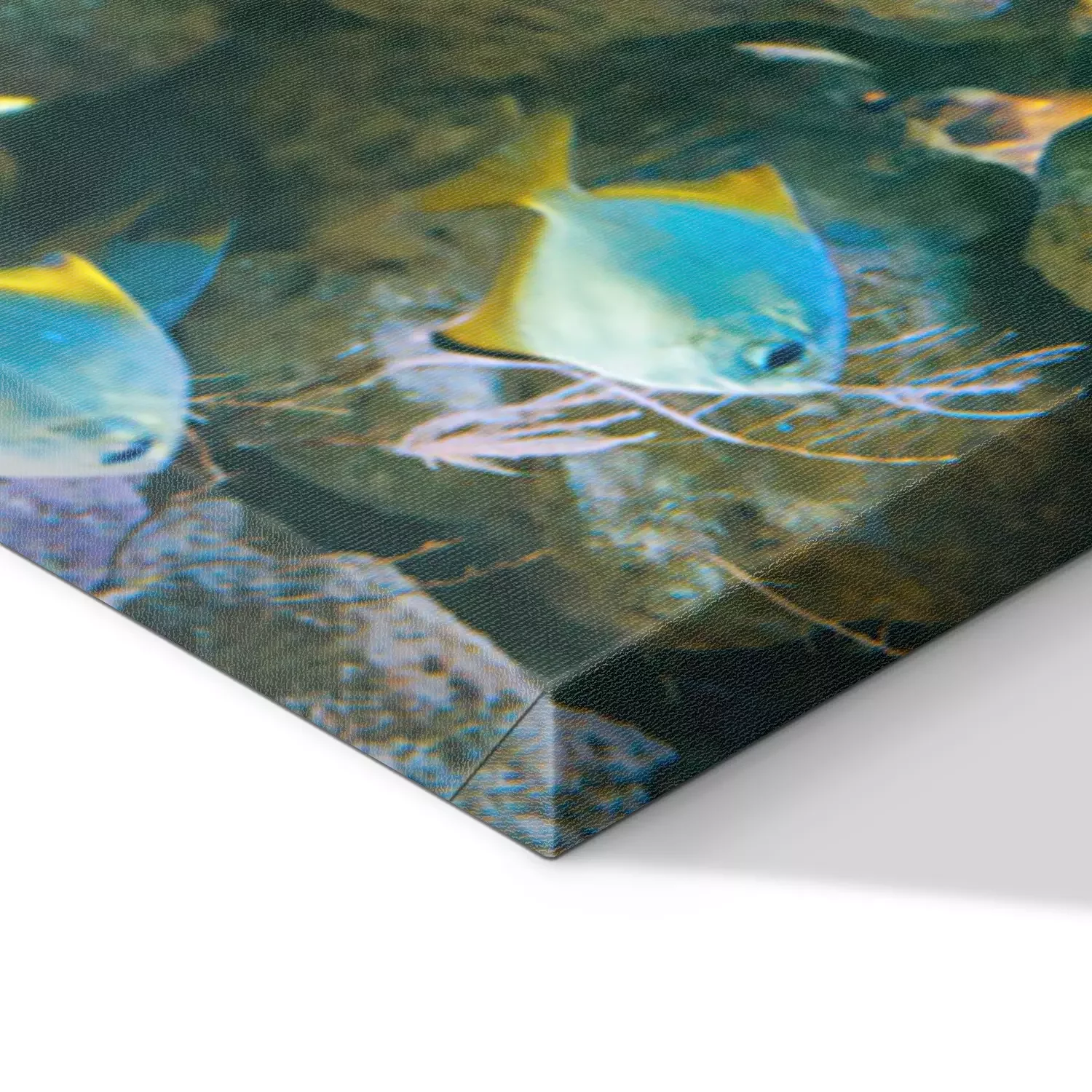 De print wordt aangebracht op hoogwaardig canvas dat op een schildersweefgetouw (spieraam) wordt gespannen. Omdat de print de zijranden bedekt, hoeft het ontwerp niet met een extra kader te worden omlijst. Wij raden ook composities aan die uit meerdere foto's bestaan en zo een coherente compositie vormen.