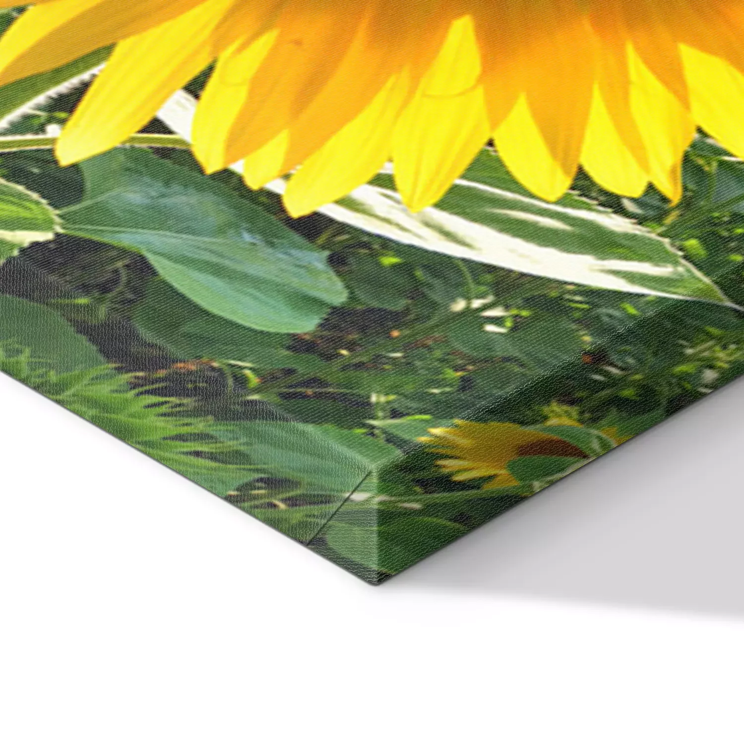 De print wordt aangebracht op hoogwaardig canvas dat op een schildersweefgetouw (spieraam) wordt gespannen. Omdat de print de zijranden bedekt, hoeft het ontwerp niet met een extra kader te worden omlijst. Wij raden ook composities aan die uit meerdere foto's bestaan en zo een coherente compositie vormen.