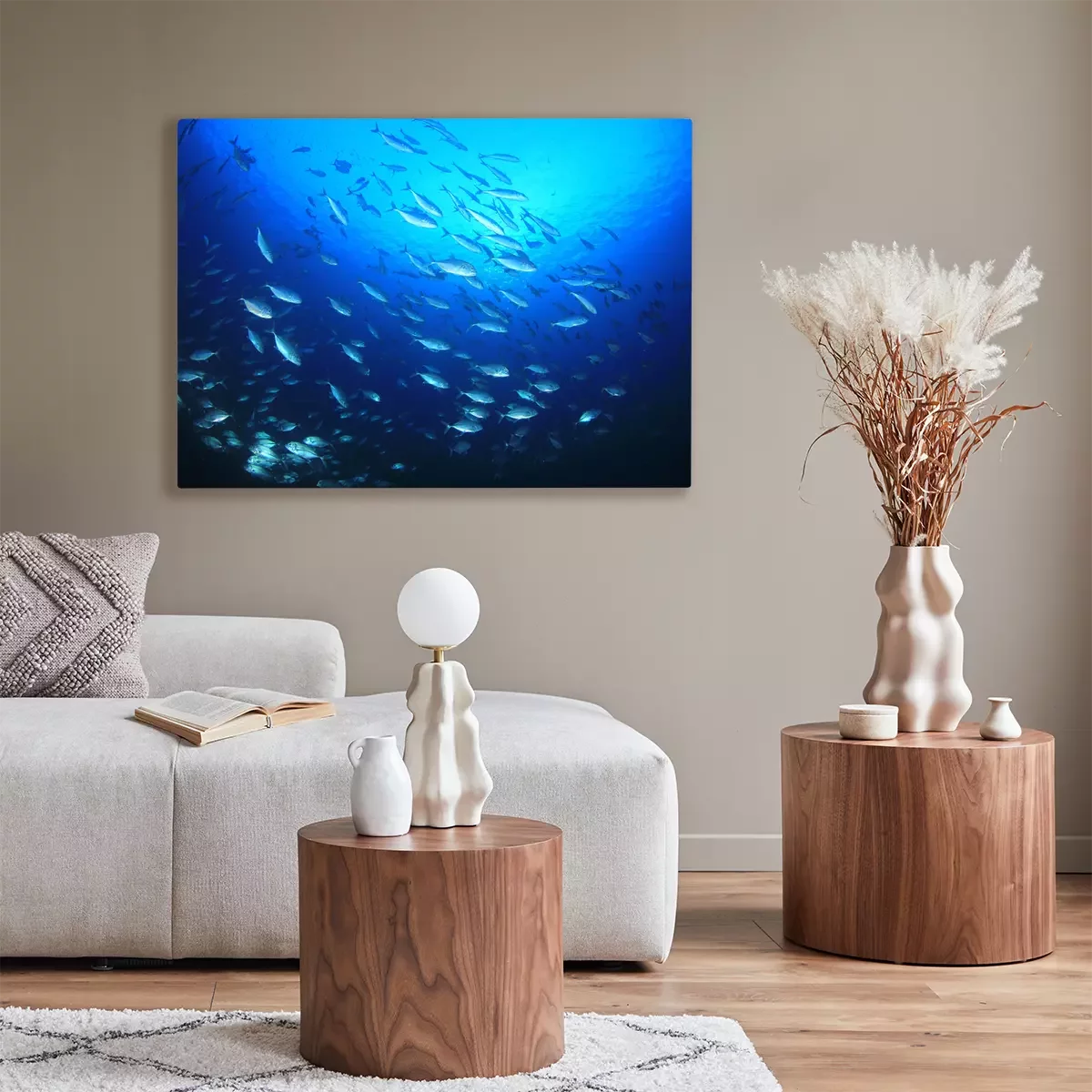 De print wordt aangebracht op hoogwaardig canvas dat op een schildersweefgetouw (spieraam) wordt gespannen. Omdat de print de zijranden bedekt, hoeft het ontwerp niet met een extra kader te worden omlijst. Wij raden ook composities aan die uit meerdere foto's bestaan en zo een coherente compositie vormen.