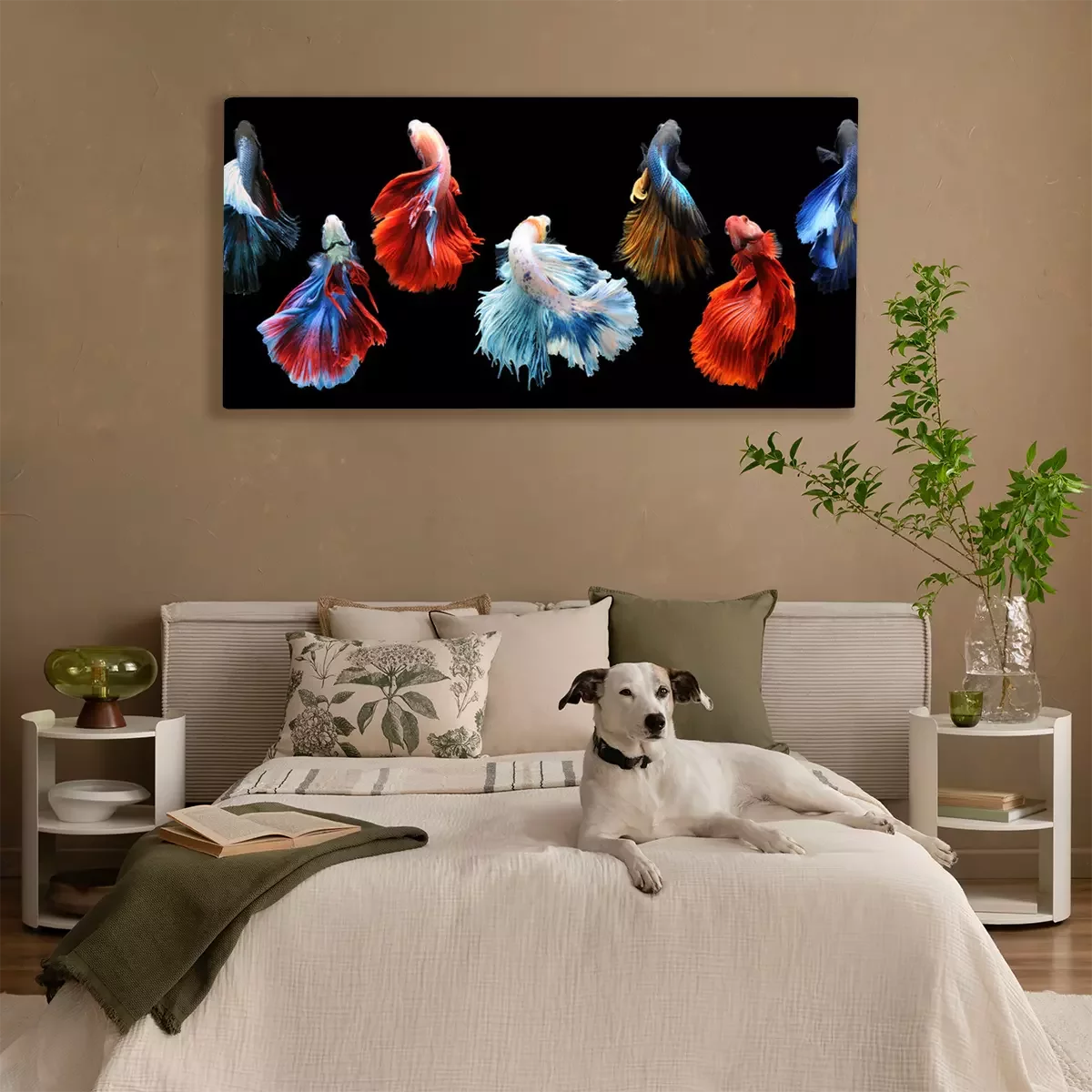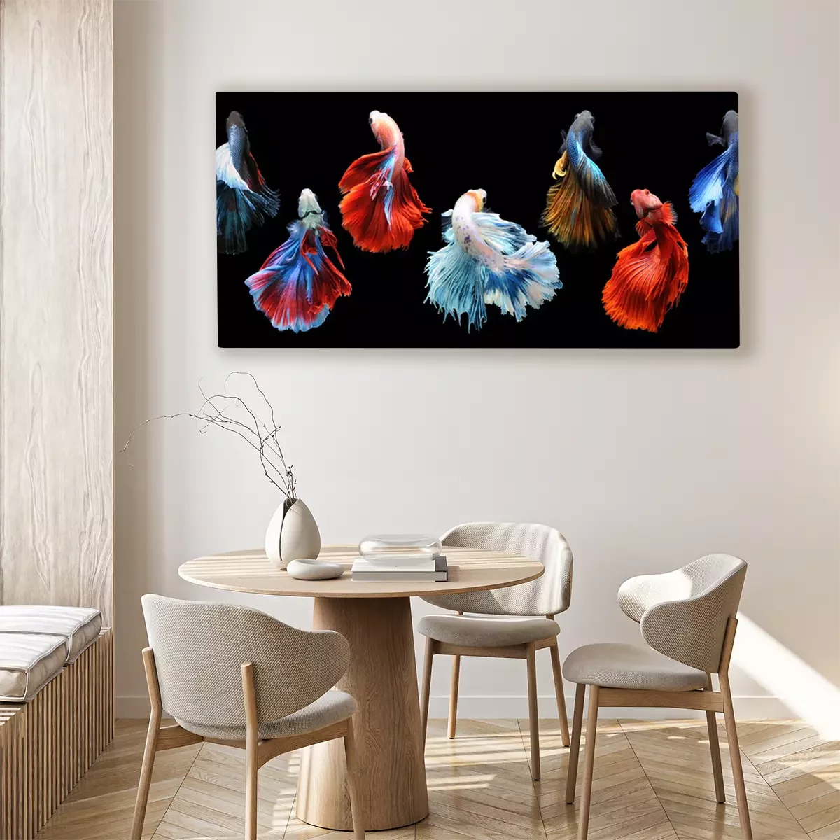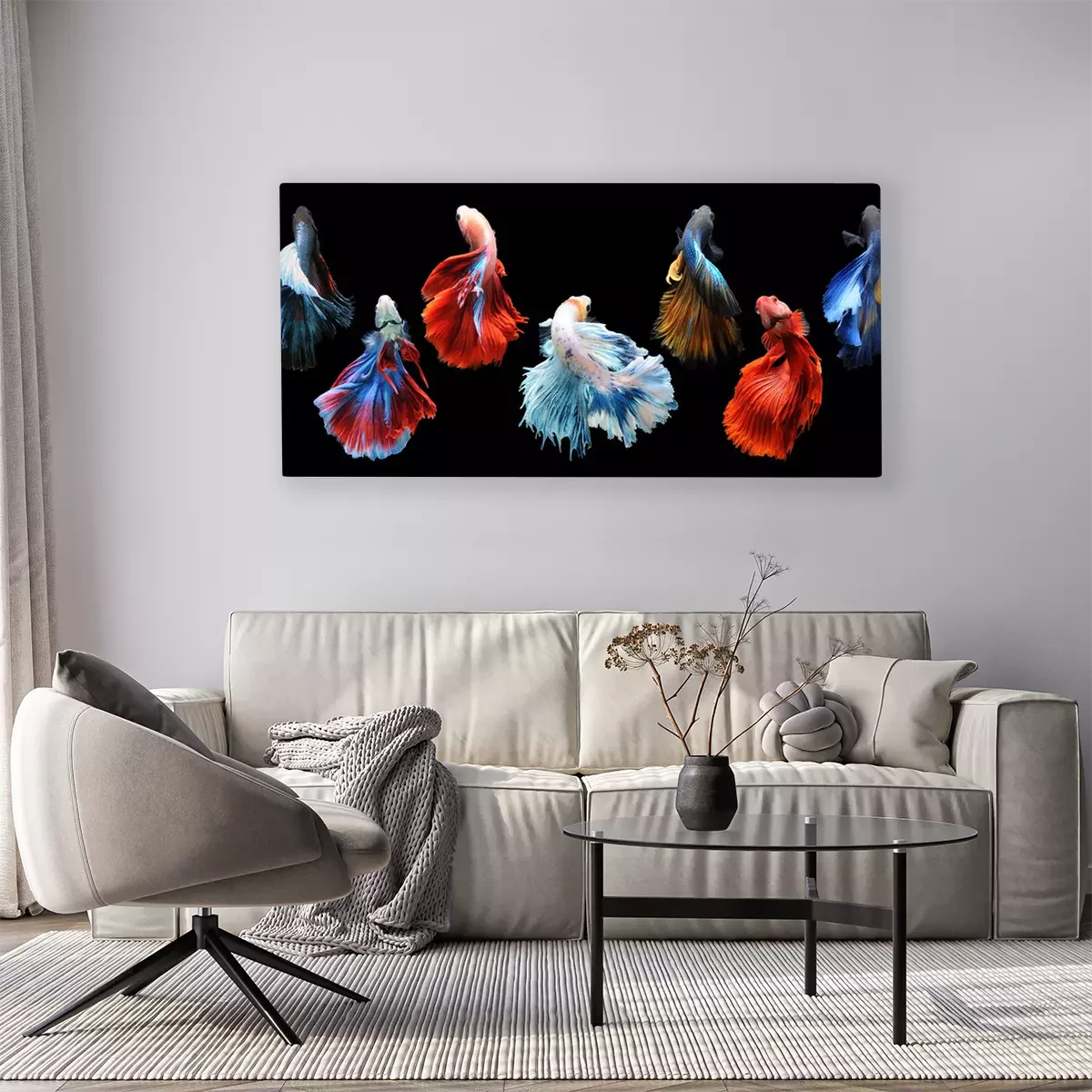 De print wordt aangebracht op hoogwaardig canvas dat op een schildersweefgetouw (spieraam) wordt gespannen. Omdat de print de zijranden bedekt, hoeft het ontwerp niet met een extra kader te worden omlijst. Wij raden ook composities aan die uit meerdere foto's bestaan en zo een coherente compositie vormen.