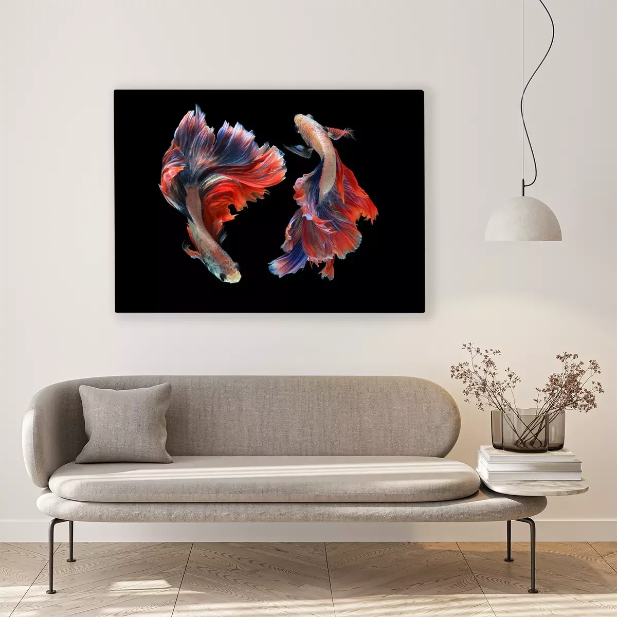 De print wordt aangebracht op hoogwaardig canvas dat op een schildersweefgetouw (spieraam) wordt gespannen. Omdat de print de zijranden bedekt, hoeft het ontwerp niet met een extra kader te worden omlijst. Wij raden ook composities aan die uit meerdere foto's bestaan en zo een coherente compositie vormen.