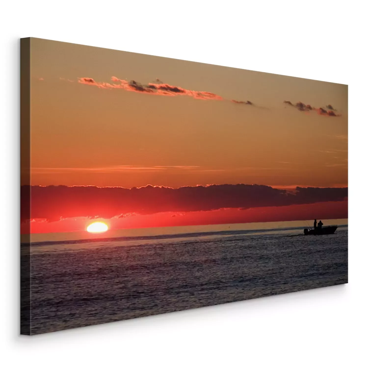 Canvas Vissers tegen de achtergrond van de zonsondergang