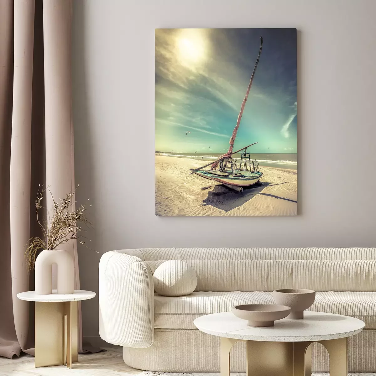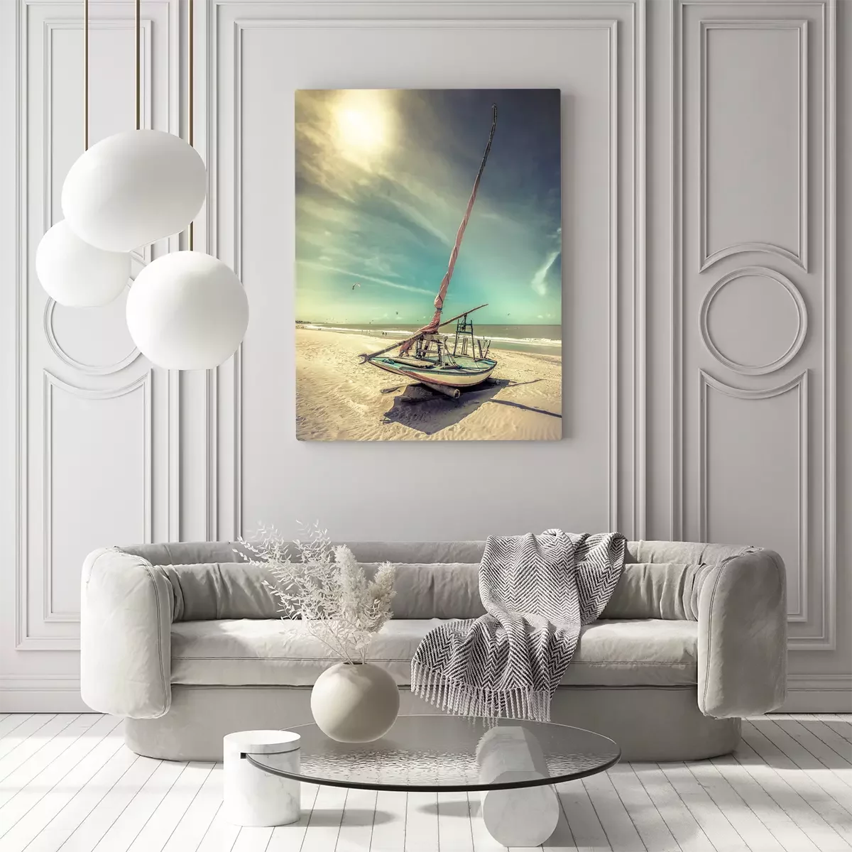Canvas: Vissersboot op het strand van Natal, Brazilië