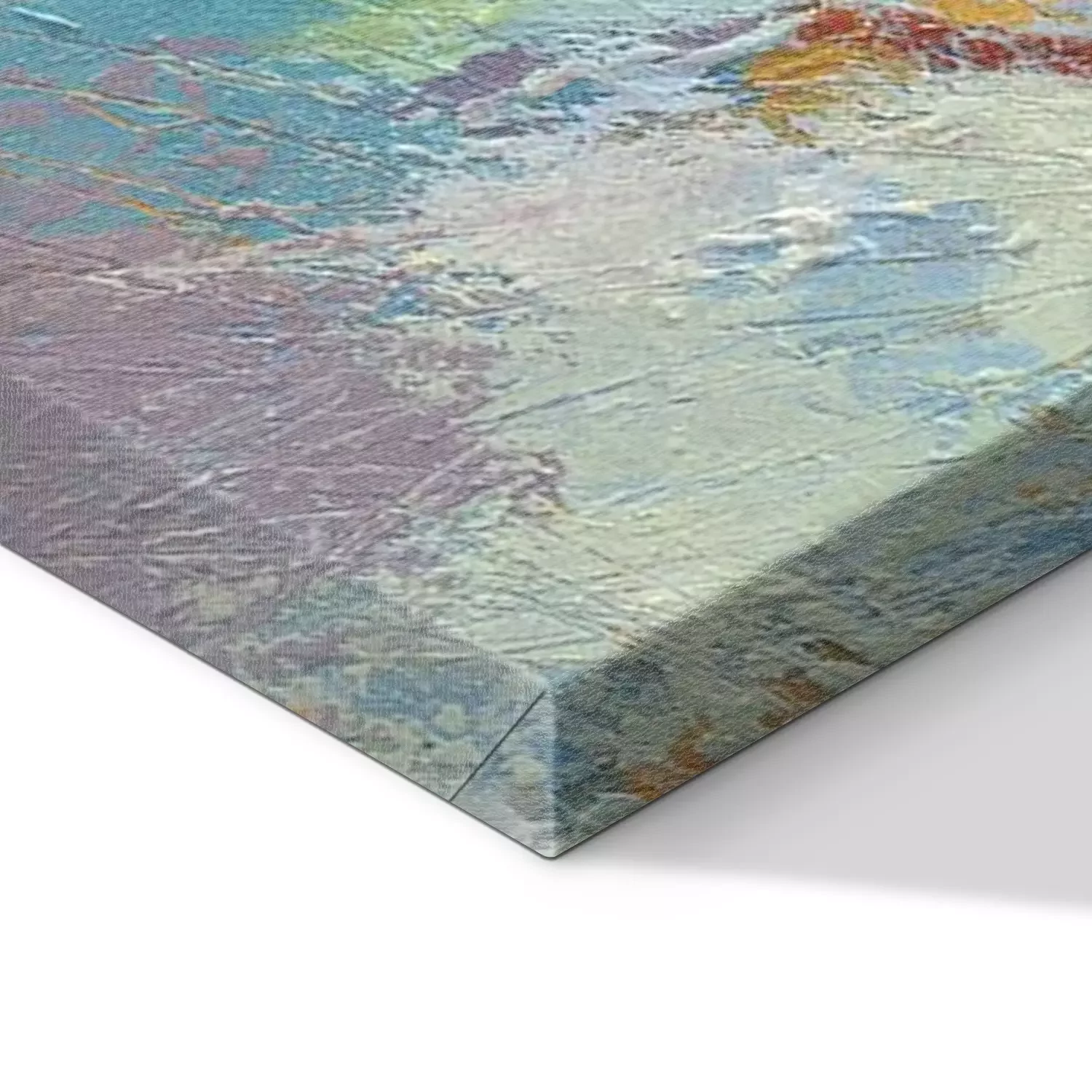 De print wordt aangebracht op hoogwaardig canvas dat op een schildersweefgetouw (spieraam) wordt gespannen. Omdat de print de zijranden bedekt, hoeft het ontwerp niet met een extra kader te worden omlijst. Wij raden ook composities aan die uit meerdere foto's bestaan en zo een coherente compositie vormen.