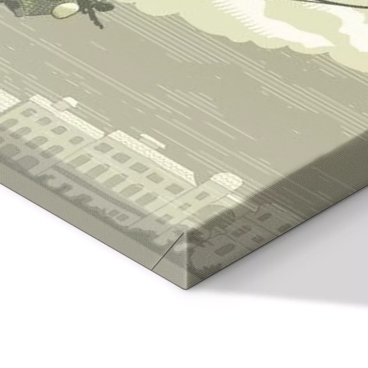 De print wordt aangebracht op hoogwaardig canvas dat op een schildersweefgetouw (spieraam) wordt gespannen. Omdat de print de zijranden bedekt, hoeft het ontwerp niet met een extra kader te worden omlijst. Wij raden ook composities aan die uit meerdere foto's bestaan en zo een coherente compositie vormen.