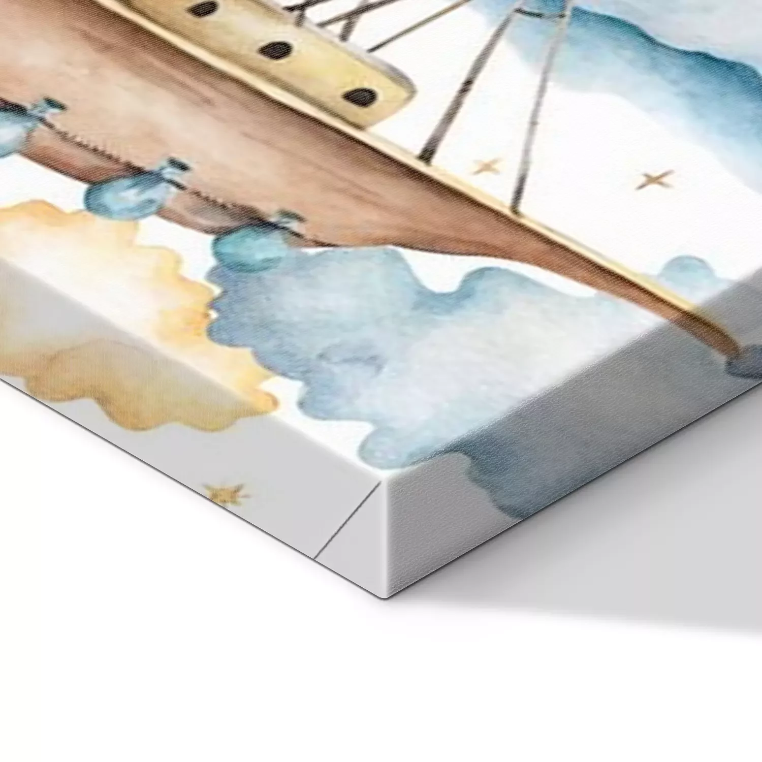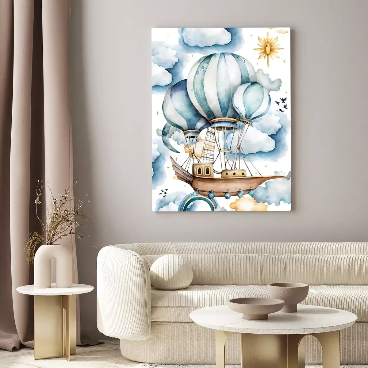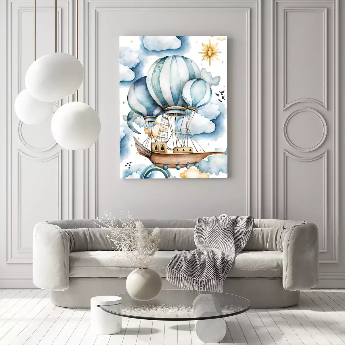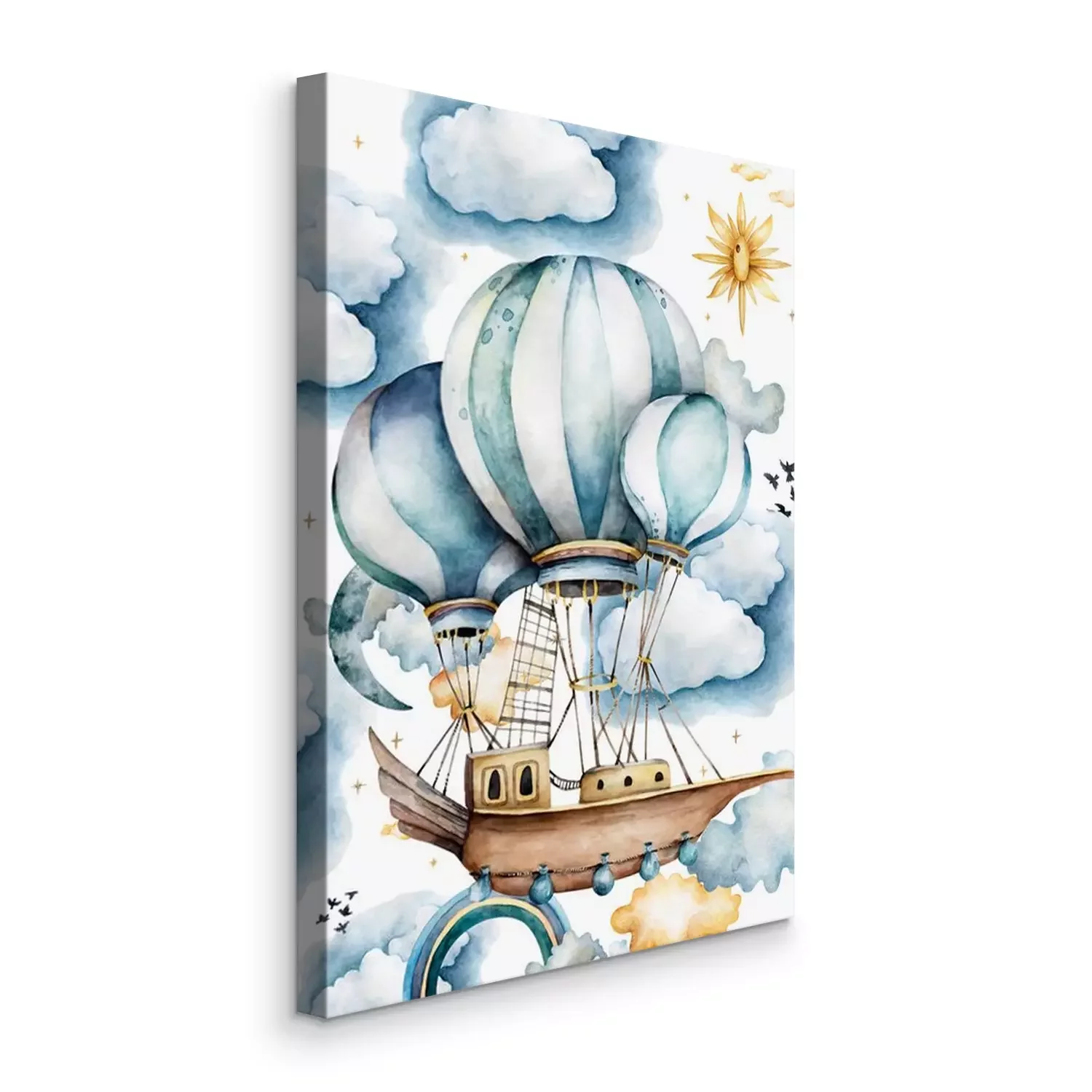 Canvas: Vliegend schip op ballonnen tussen pluizige wolken