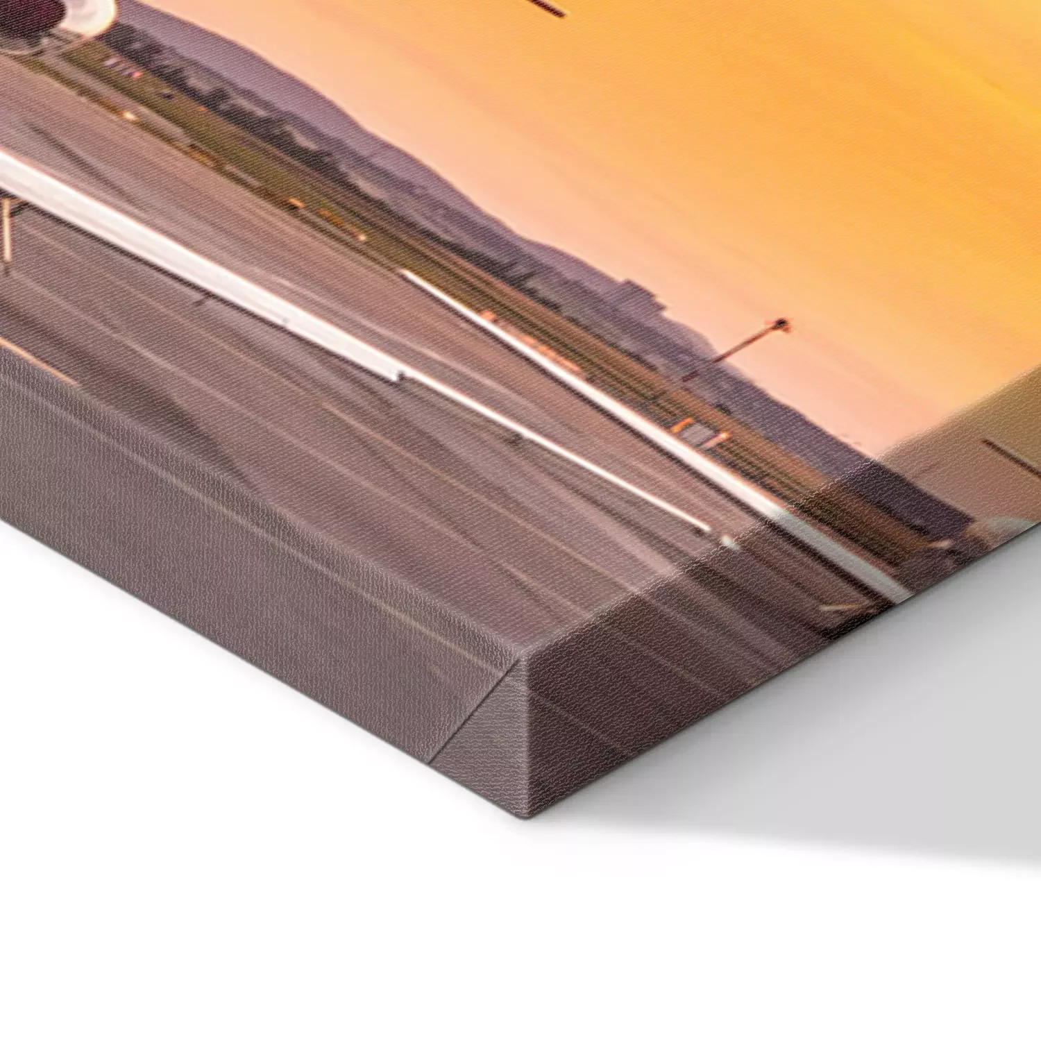 De print wordt aangebracht op hoogwaardig canvas dat op een schildersweefgetouw (spieraam) wordt gespannen. Omdat de print de zijranden bedekt, hoeft het ontwerp niet met een extra kader te worden omlijst. Wij raden ook composities aan die uit meerdere foto's bestaan en zo een coherente compositie vormen.