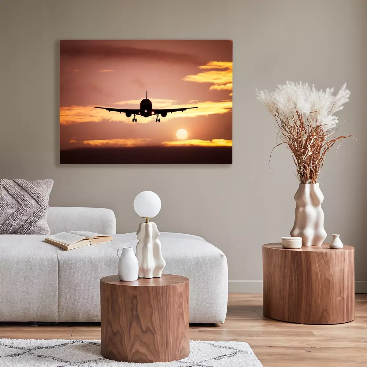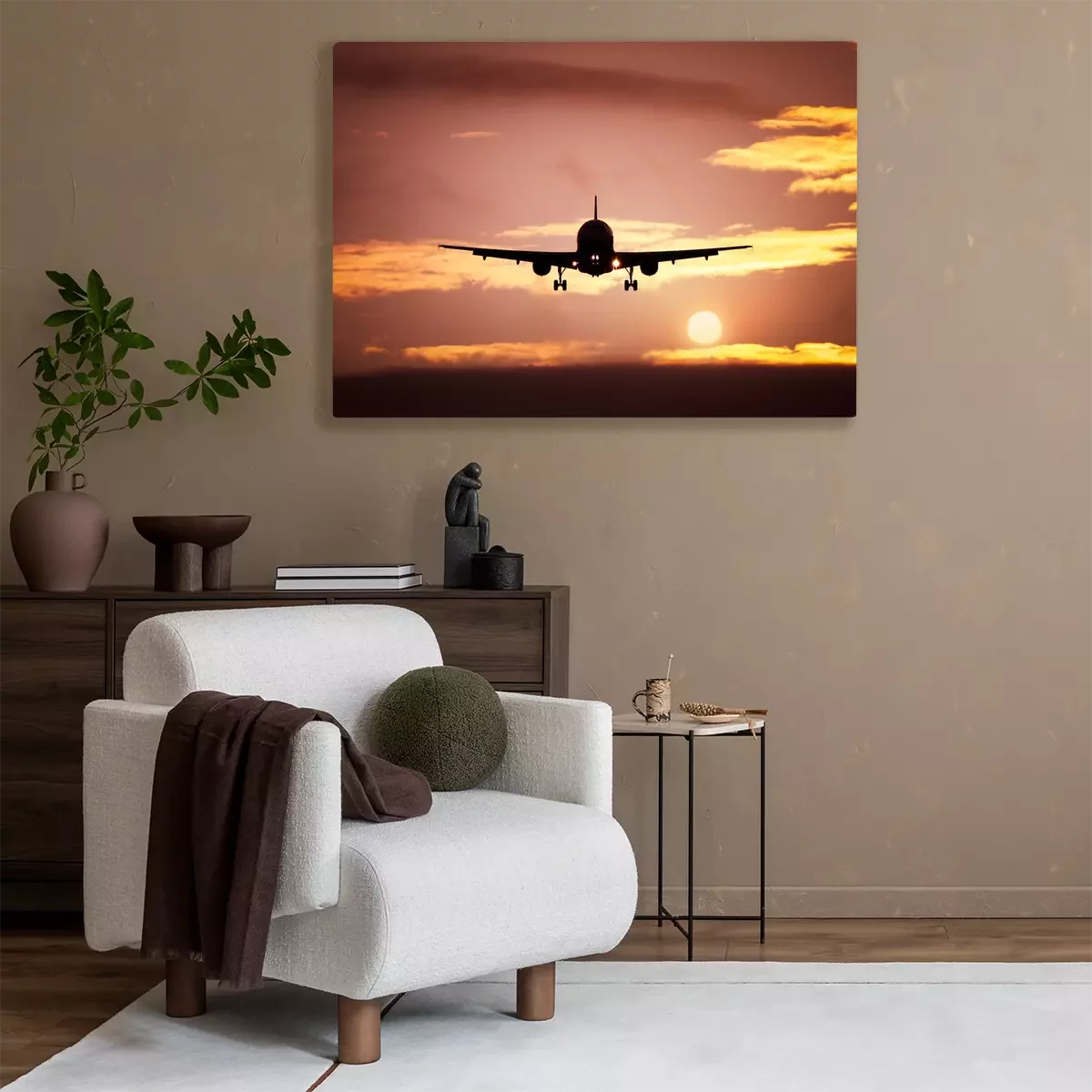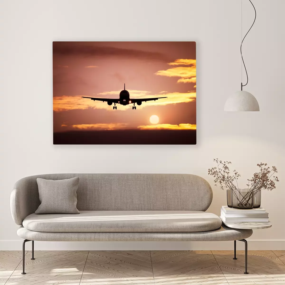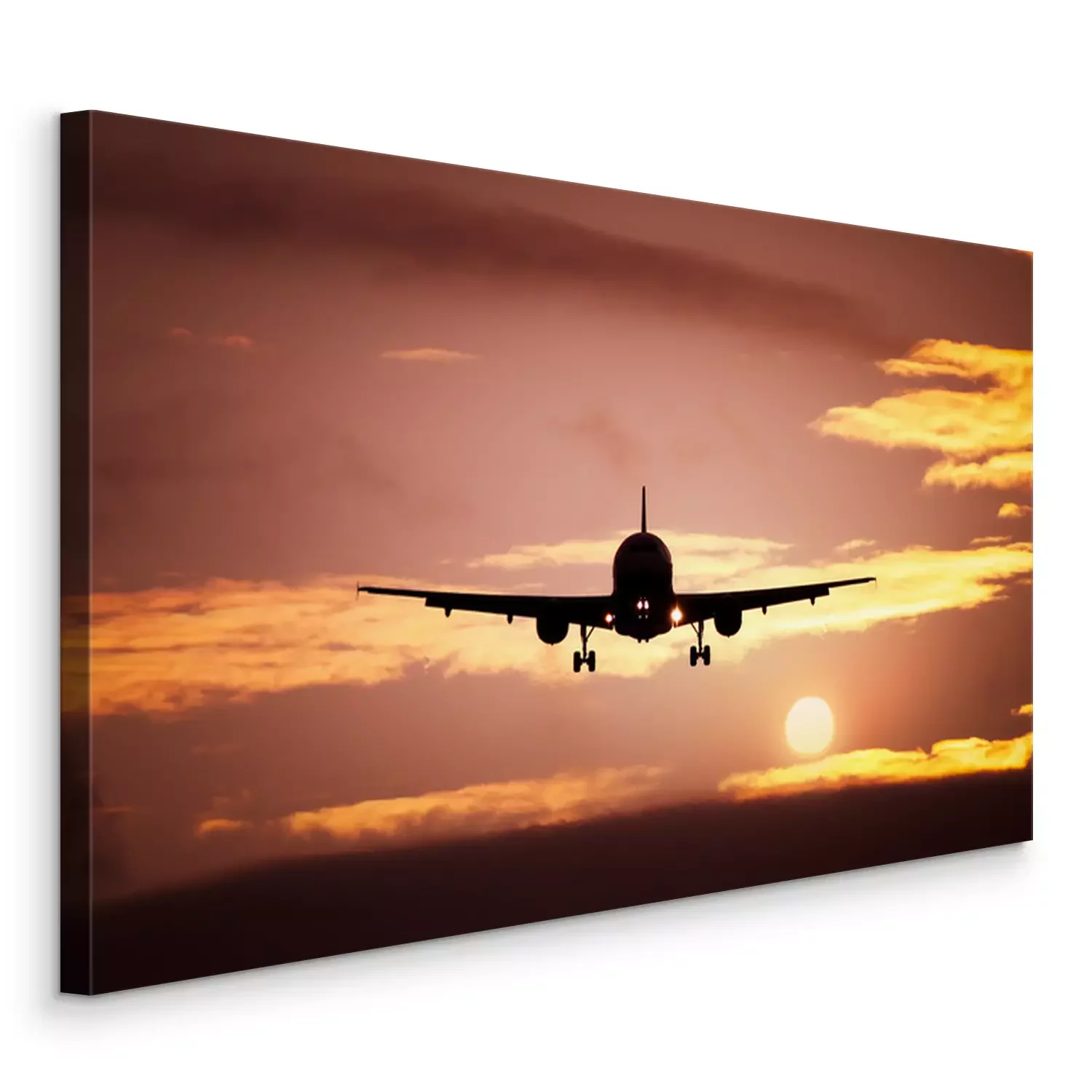 Canvas: vliegtuig in de zonsondergang hemel
