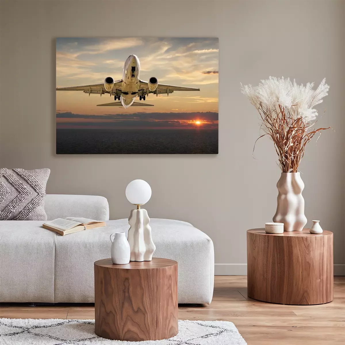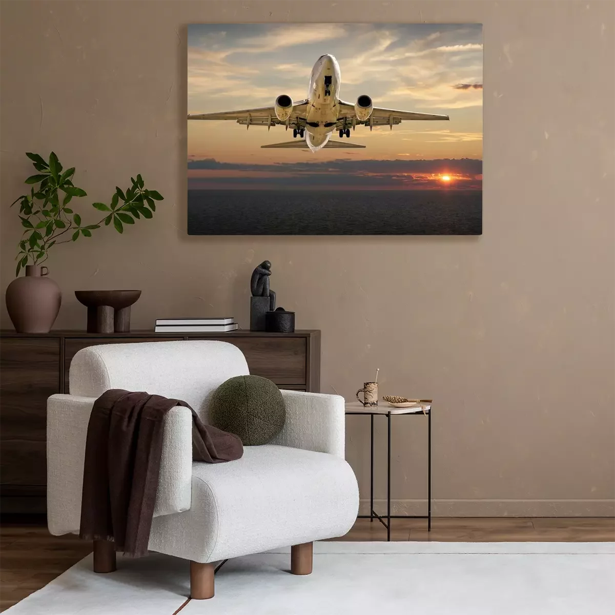 Canvas: Vliegtuig landing bij zonsondergang