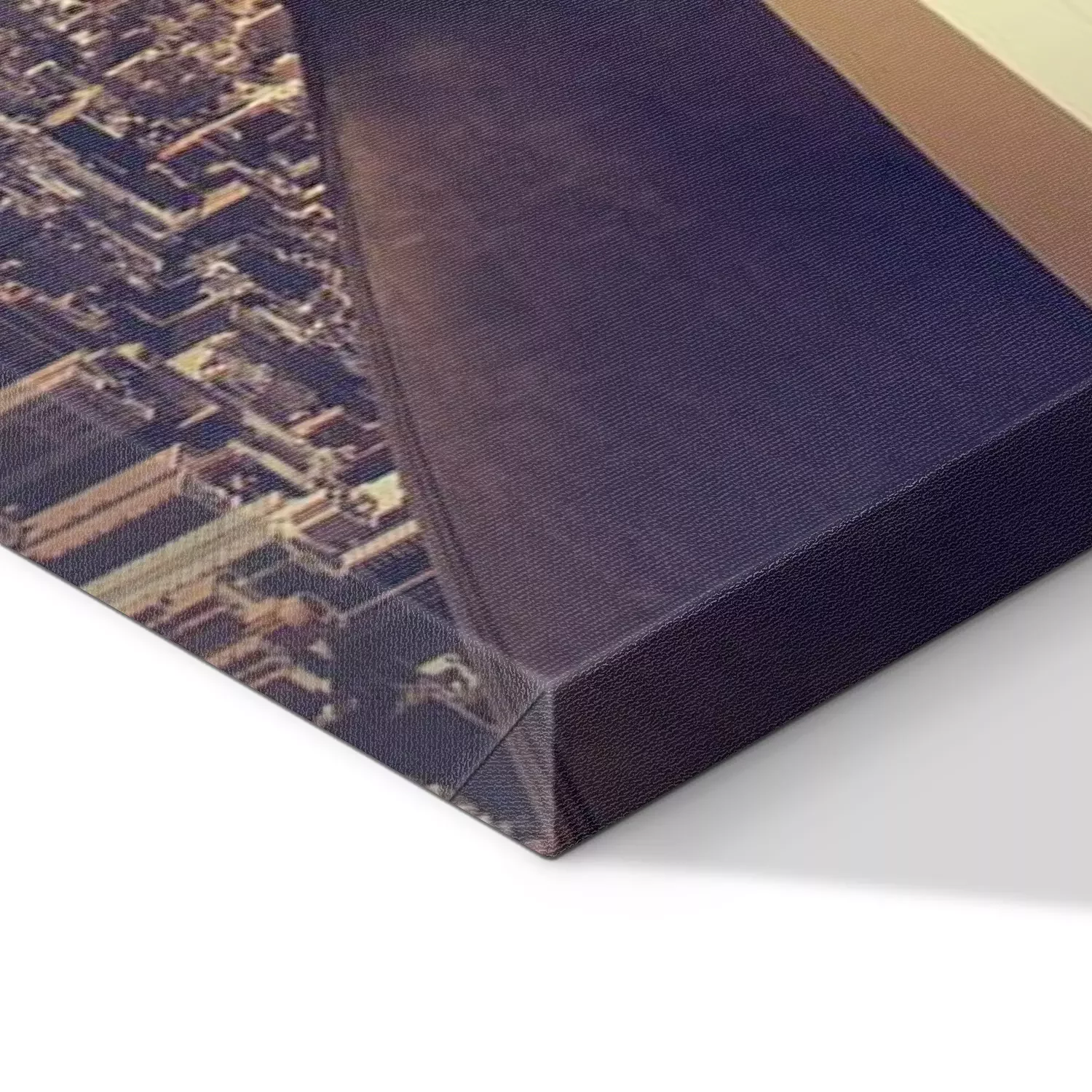 De print wordt aangebracht op hoogwaardig canvas dat op een schildersweefgetouw (spieraam) wordt gespannen. Omdat de print de zijranden bedekt, hoeft het ontwerp niet met een extra kader te worden omlijst. Wij raden ook composities aan die uit meerdere foto's bestaan en zo een coherente compositie vormen.
