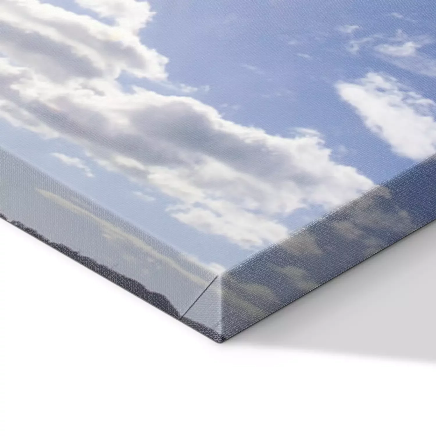 De print wordt aangebracht op hoogwaardig canvas dat op een schildersweefgetouw (spieraam) wordt gespannen. Omdat de print de zijranden bedekt, hoeft het ontwerp niet met een extra kader te worden omlijst. Wij raden ook composities aan die uit meerdere foto's bestaan en zo een coherente compositie vormen.