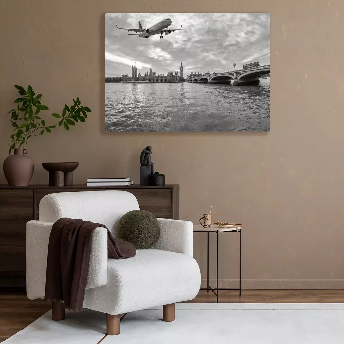 Canvas Vliegtuig over Londen