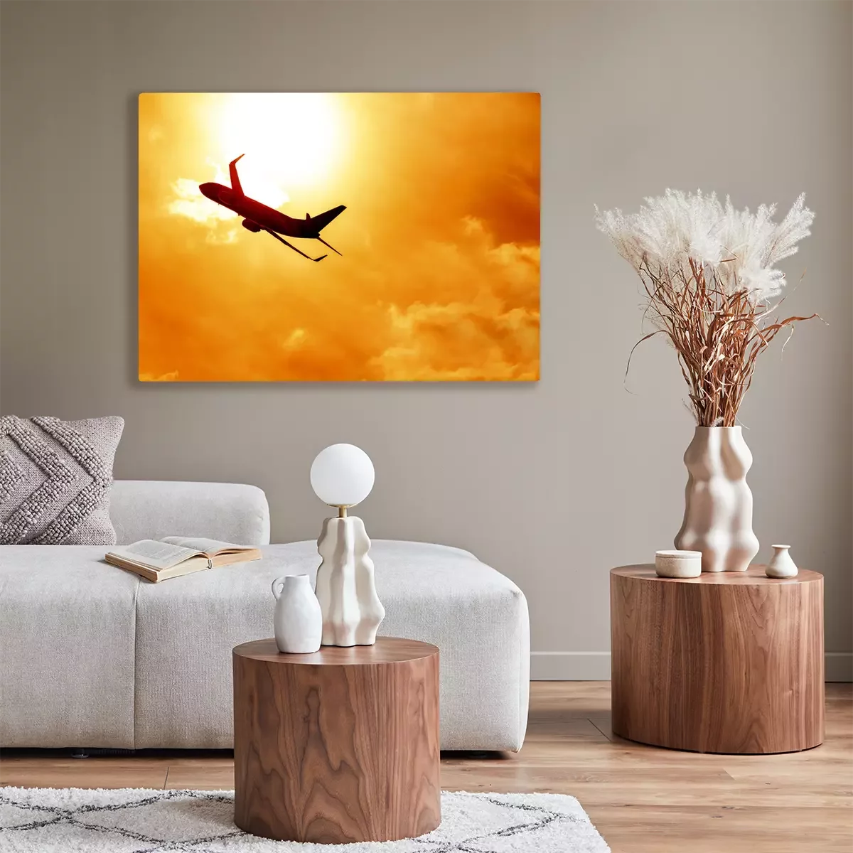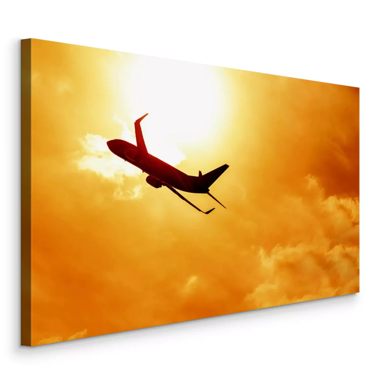 Canvas: Vliegtuig silhouet zonsondergang op de achtergrond