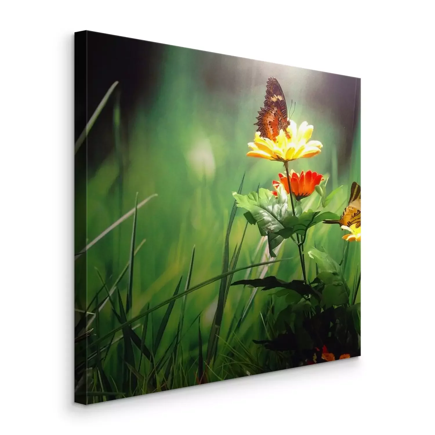 Canvas Vlinder aan een bloem