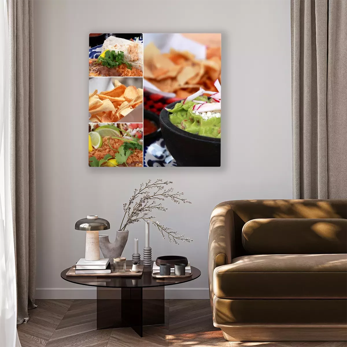 De print wordt aangebracht op hoogwaardig canvas dat op een schildersweefgetouw (spieraam) wordt gespannen. Omdat de print de zijranden bedekt, hoeft het ontwerp niet met een extra kader te worden omlijst. Wij raden ook composities aan die uit meerdere foto's bestaan en zo een coherente compositie vormen.