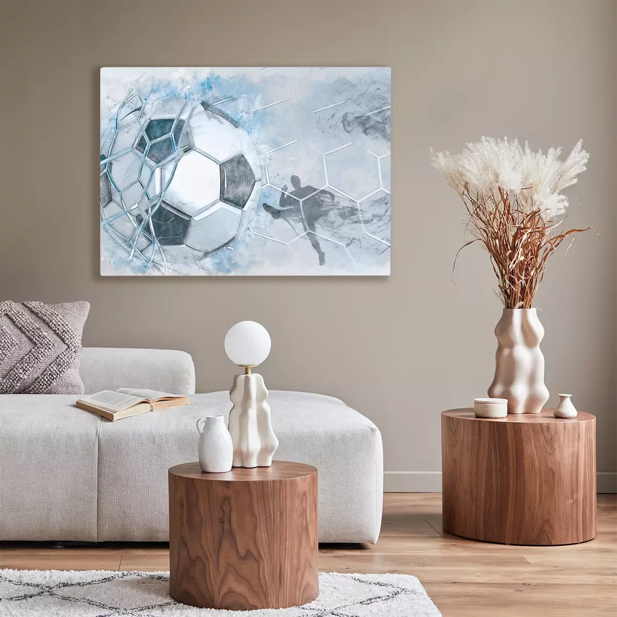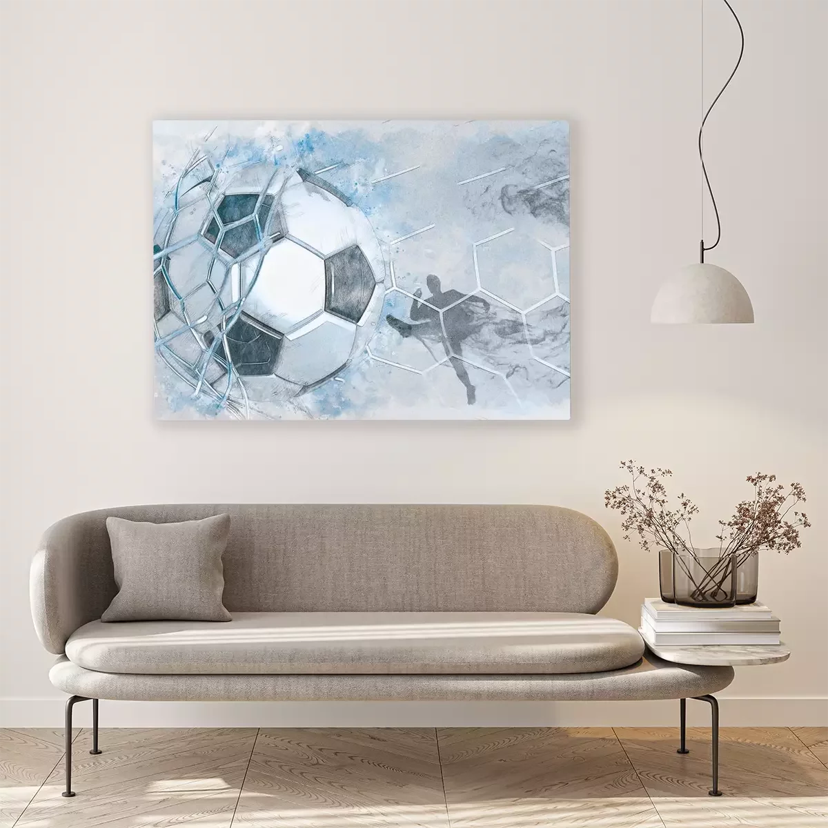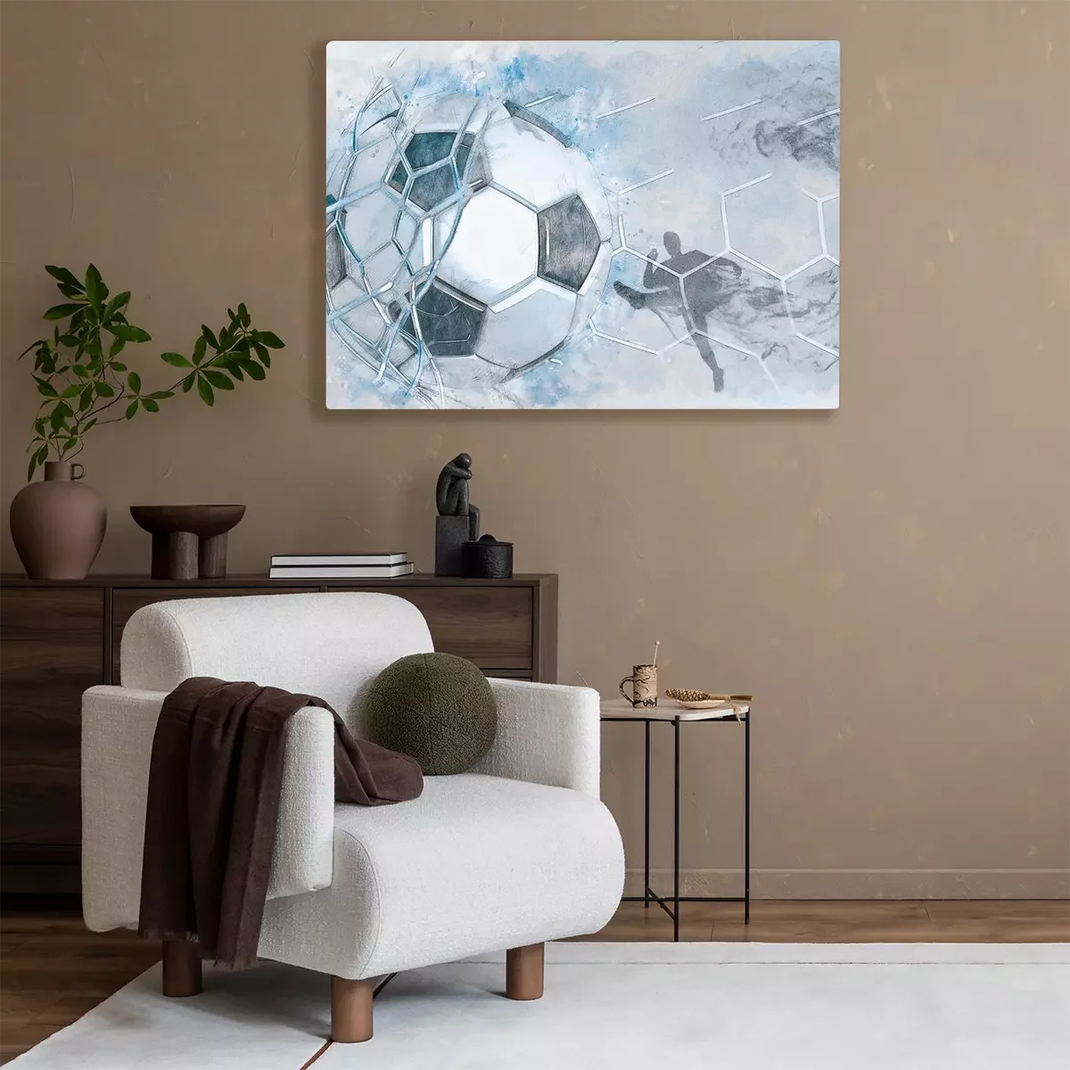 Voetbal die het doel binnenkomt, dynamische aquarel