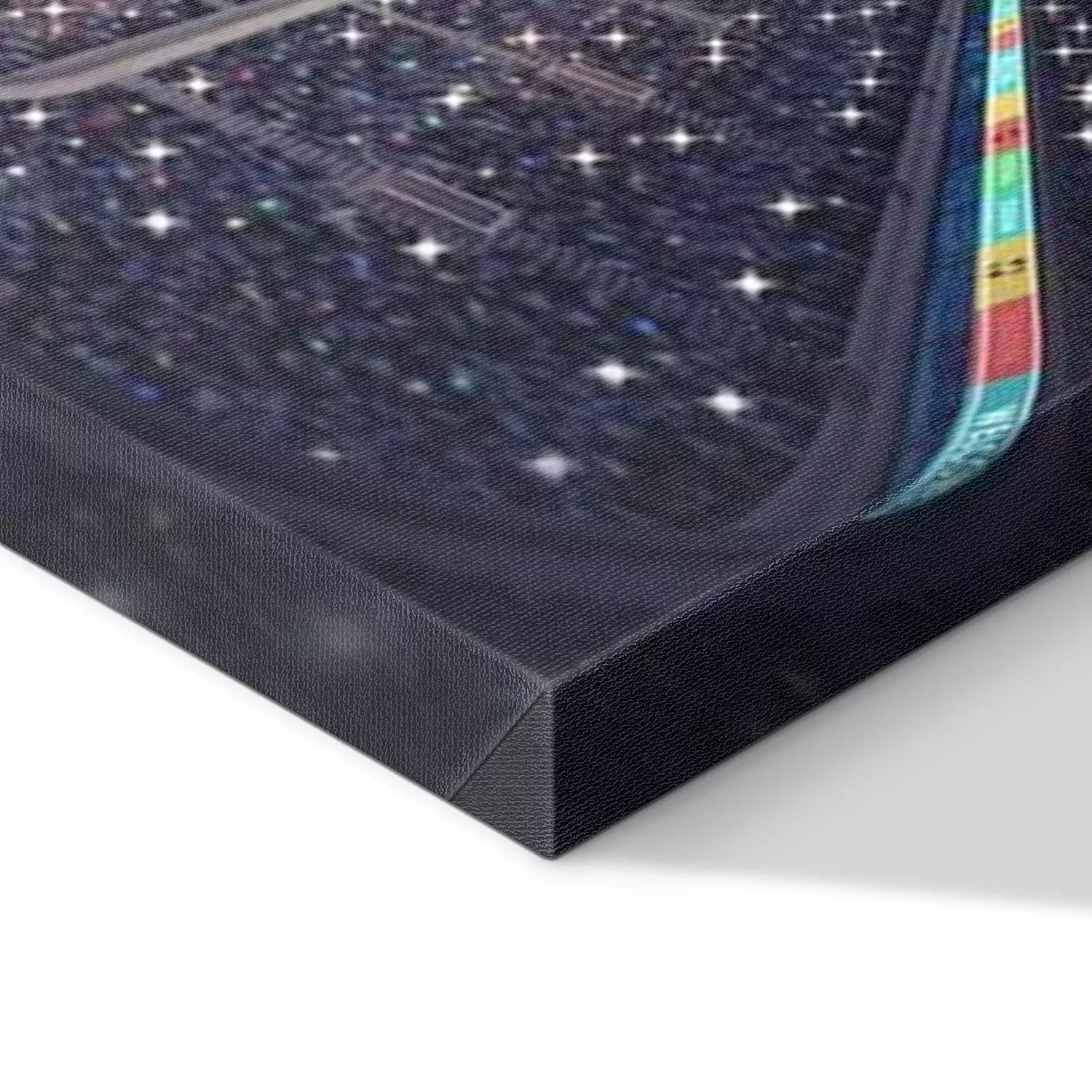 De print wordt aangebracht op hoogwaardig canvas dat op een schildersweefgetouw (spieraam) wordt gespannen. Omdat de print de zijranden bedekt, hoeft het ontwerp niet met een extra kader te worden omlijst. Wij raden ook composities aan die uit meerdere foto's bestaan en zo een coherente compositie vormen.