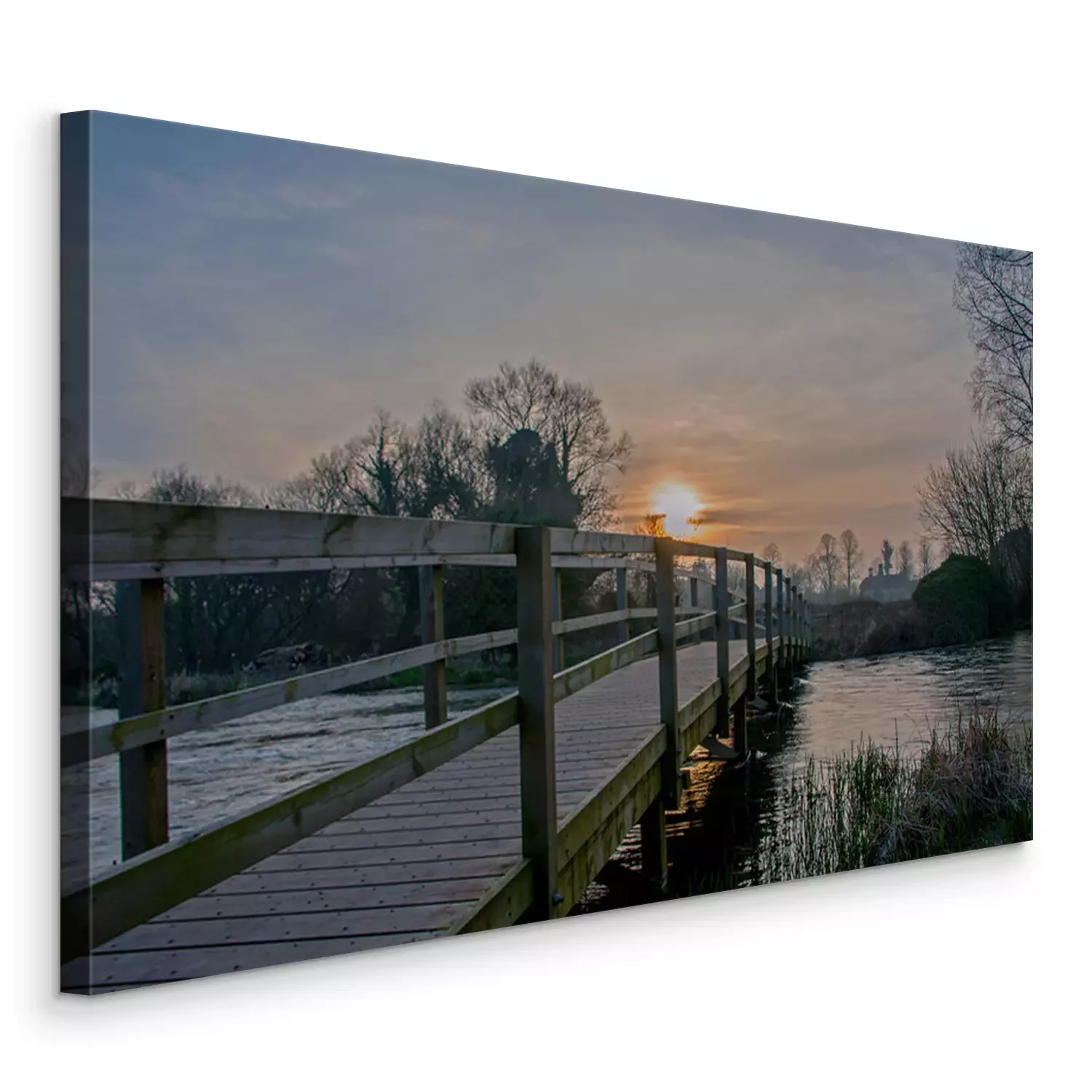 Canvas: Voetgangersbrug over een overstroomde rivier de Test in de buurt van Stockbridge in de Test-vallei, Hampshire, Engeland.