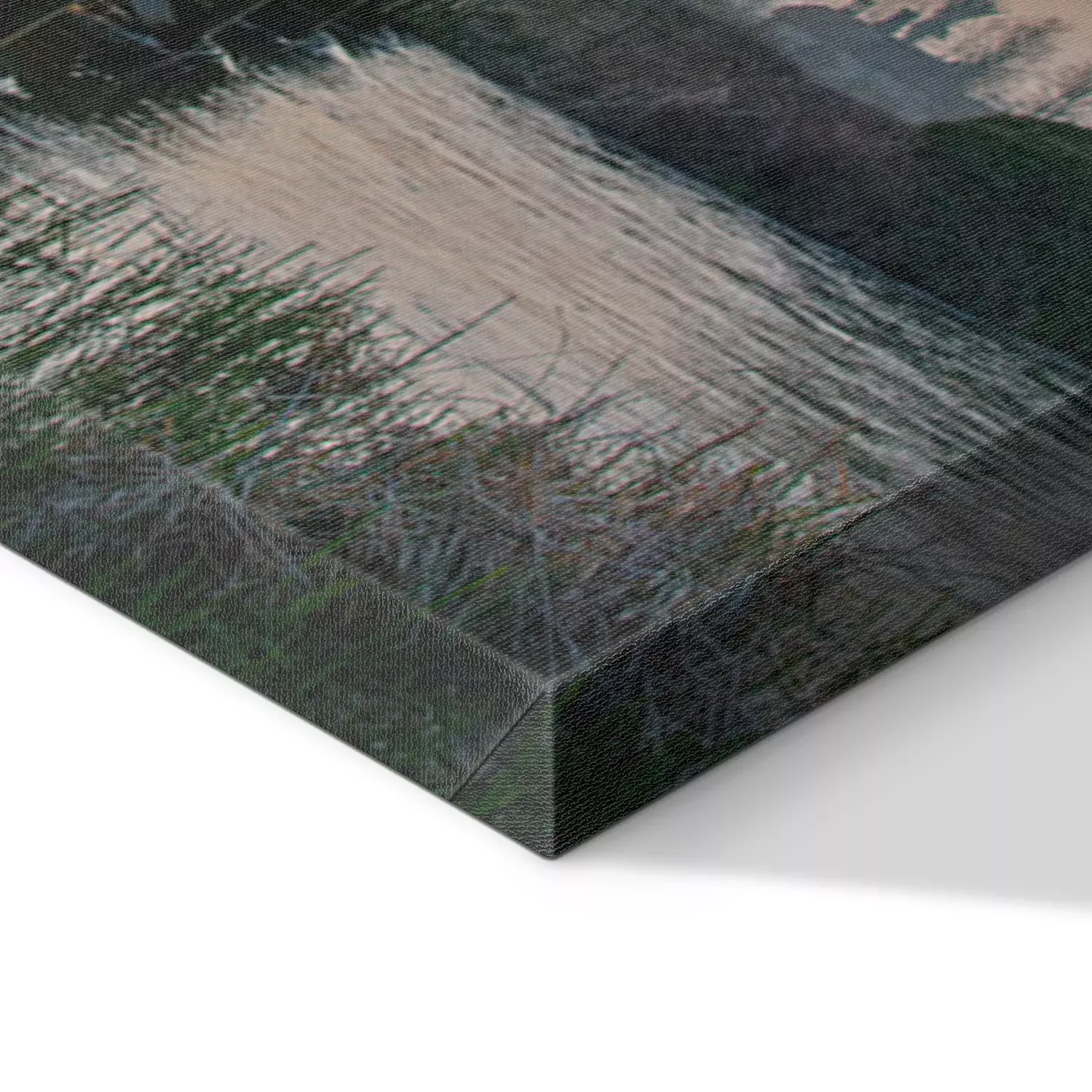 De print wordt aangebracht op hoogwaardig canvas dat op een schildersweefgetouw (spieraam) wordt gespannen. Omdat de print de zijranden bedekt, hoeft het ontwerp niet met een extra kader te worden omlijst. Wij raden ook composities aan die uit meerdere foto's bestaan en zo een coherente compositie vormen.