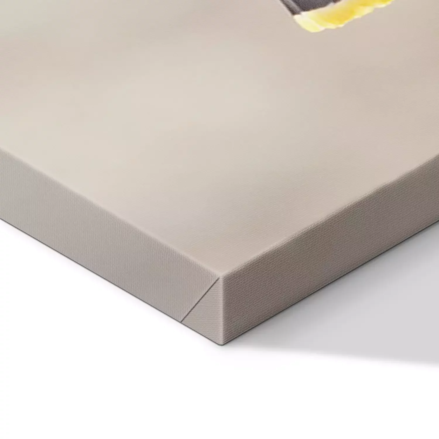 De print wordt aangebracht op hoogwaardig canvas dat op een schildersweefgetouw (spieraam) wordt gespannen. Omdat de print de zijranden bedekt, hoeft het ontwerp niet met een extra kader te worden omlijst. Wij raden ook composities aan die uit meerdere foto's bestaan en zo een coherente compositie vormen.