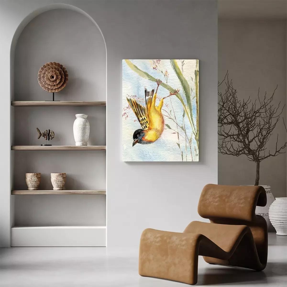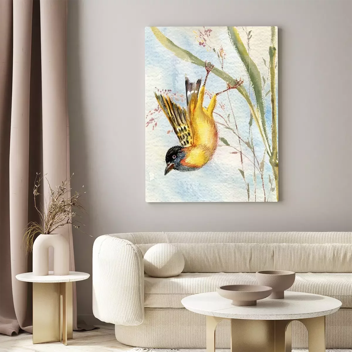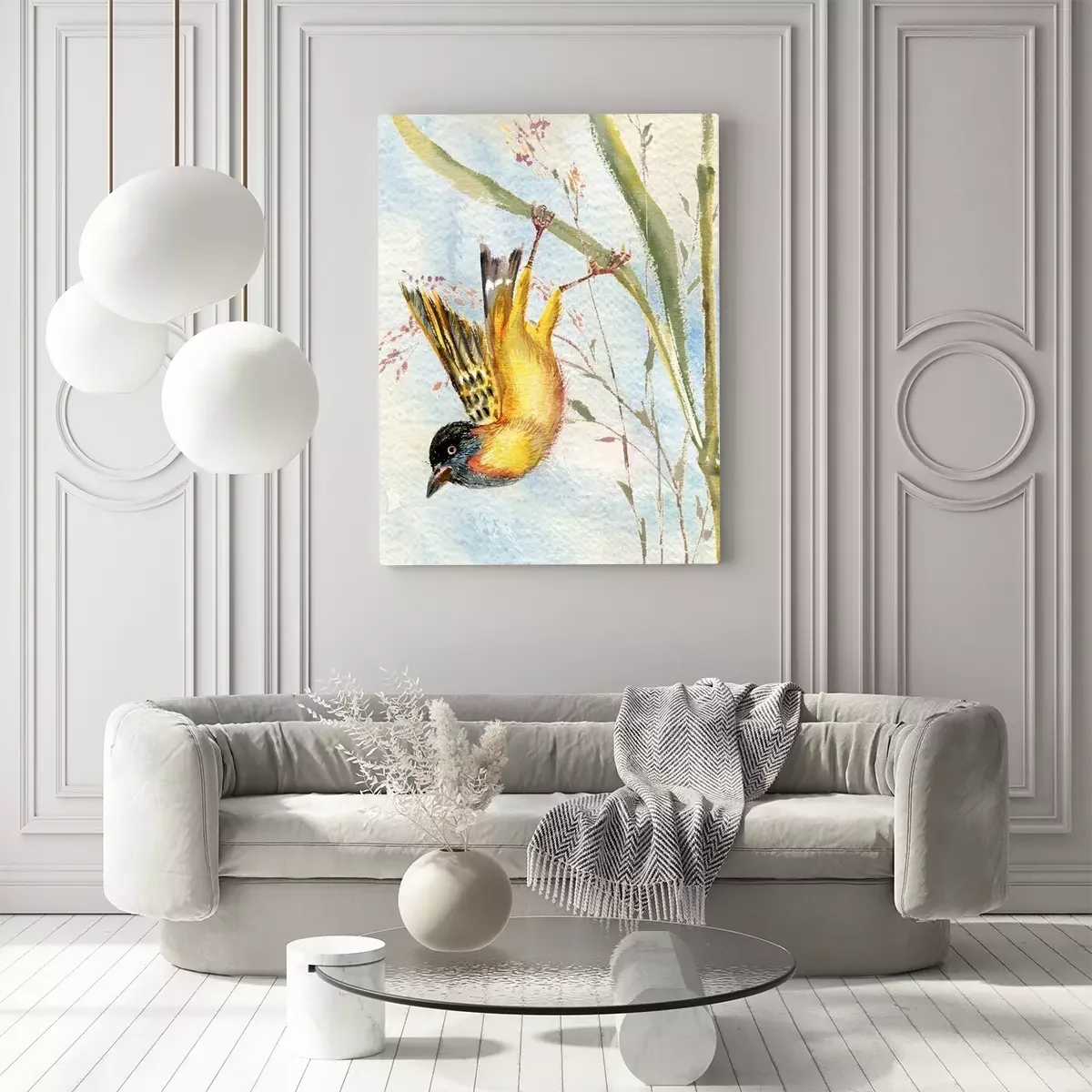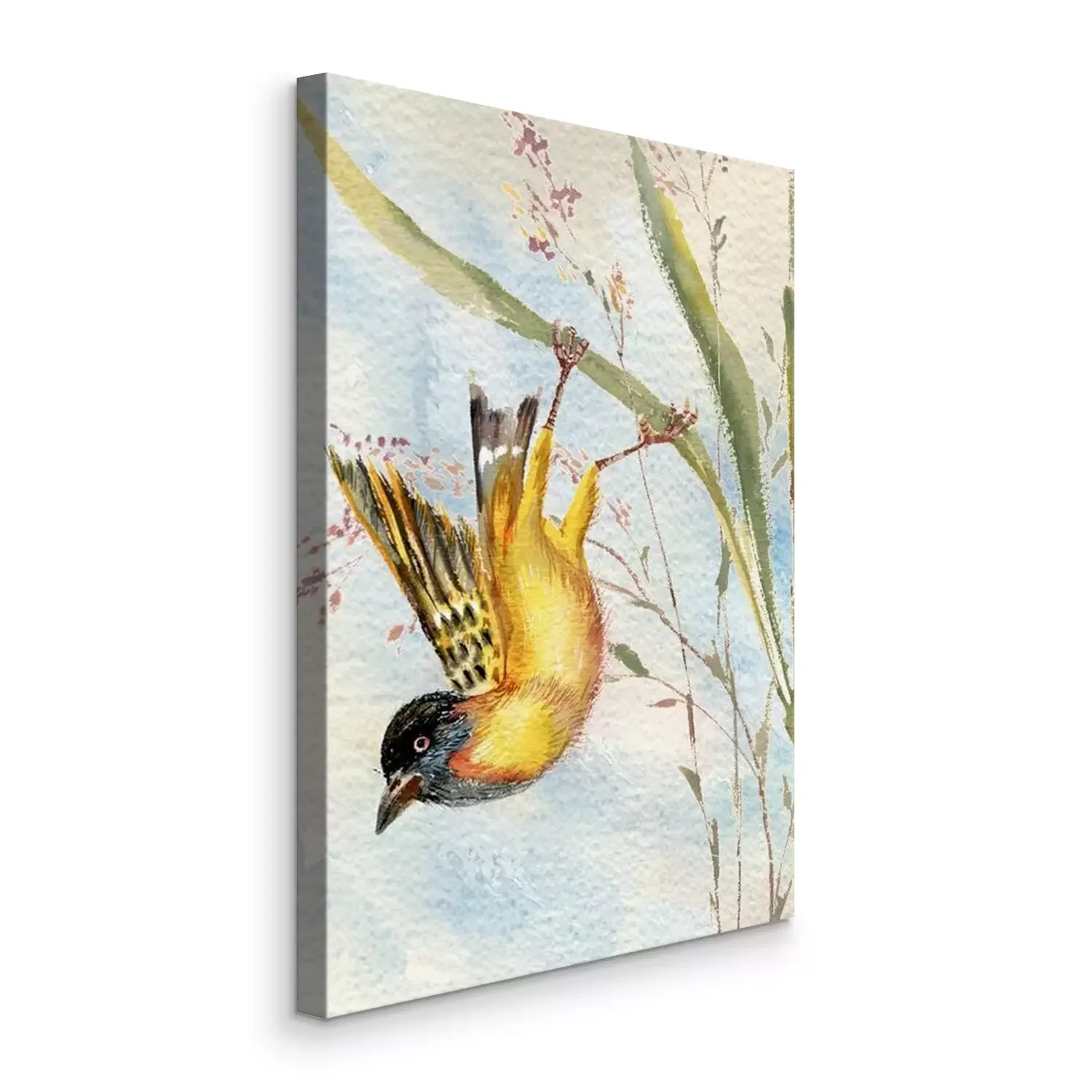 Canvas: Vogel op een grasspriet