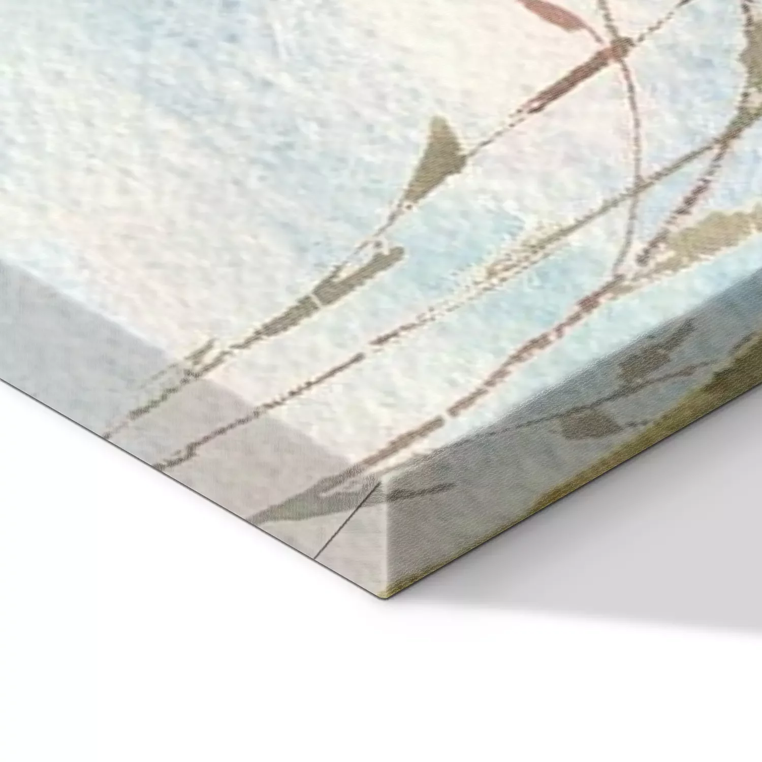 De print wordt aangebracht op hoogwaardig canvas dat op een schildersweefgetouw (spieraam) wordt gespannen. Omdat de print de zijranden bedekt, hoeft het ontwerp niet met een extra kader te worden omlijst. Wij raden ook composities aan die uit meerdere foto's bestaan en zo een coherente compositie vormen.