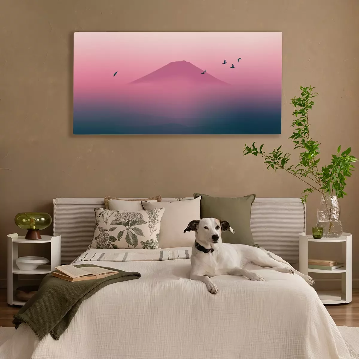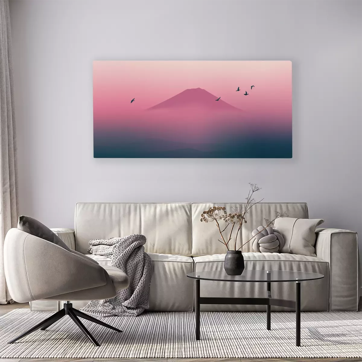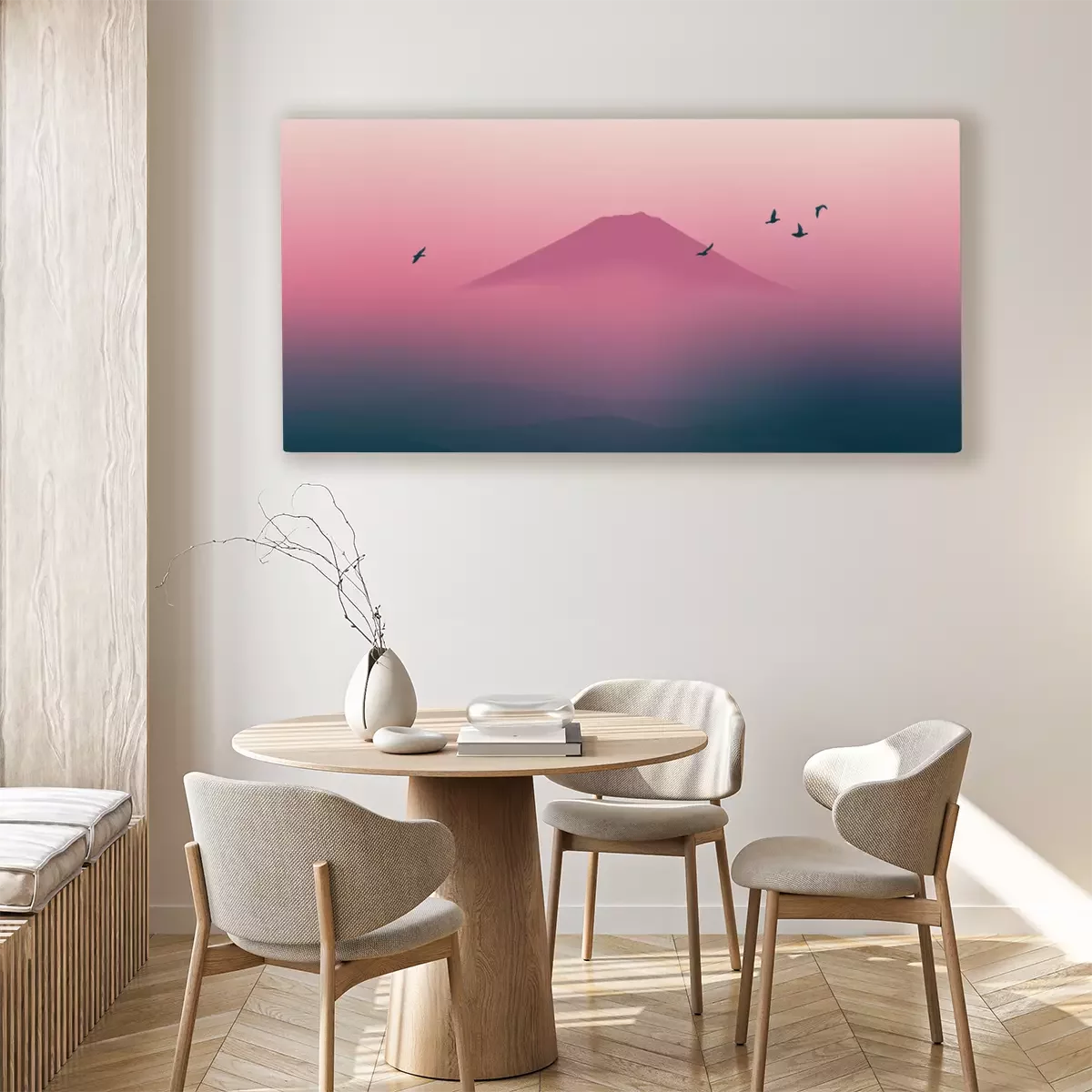 Wij verzekeren je dat, hoewel de Berg Fuji op deze wanddecoratie staat afgebeeld, canvas niet alleen Japan-liefhebbers zal aanspreken. Het is namelijk een buitengewoon indrukwekkend patroon waarvan het moeilijk is om je ogen af te houden. Het lijkt op een moderne illustratie in flat design-stijl of een computergrafiek, maar in werkelijkheid is het een artistieke foto die tijdens de schemering is genomen. Het is juist het tijdstip van de dag dat dit canvas zo bijzonder maakt. Berg wordt gepresenteerd tegen een prachtige, pastelkleurige achtergrond. Het landschap toont een schilderachtige gradient – van lichtroze via de kleur magenta tot intens donkerpaars. Het is precies dit kleurenpalet dat ervoor zorgt dat de Berg Fuji perfect past in een moderne inrichting. Canvas wordt een opvallend accent dat de bestaande inrichting zal verlevendigen en dynamiseren. Je kunt het zowel in een minimalistische als industriële woonkamer ophangen. Tegen een achtergrond van ruw, grijs beton zal zo'n canvas prachtig uitkomen. Fuji kan de hoofdblikwagen in de kamer worden, zelfs als het interieur op geen enkele manier is geïnspireerd door het Land van de Rijzende Zon. En als er Japanse accenten in het huis aanwezig zijn, is het des te meer de moeite waard om voor zo'n canvas te kiezen. Fuji in deze uitvoering zal uitstekend staan met andere grafische voorstellingen die verwijzen naar Japanse popcultuurmotieven, omdat de foto iets van de esthetiek van een stripverhaal in zich heeft. Dit aspect maakt dat dit patroon ook wordt aanbevolen voor de kamer van een tienermeisje dat geïnteresseerd is in manga en anime. Je kunt het combineren met een canvas waarop een getekend panorama van Tokio of koi-karpers te zien is. Of je nu op zoek bent naar decoratie voor de woonkamer, slaapkamer of tienerkamer, het is de moeite waard om te kiezen voor een grootschalige weergave, want zo geef je de ruimte een geheel nieuwe uitstraling. Kan de Berg Fuji echt zoveel veranderen? Canvas in groot formaat, en bovendien in opvallende kleuren, zal het interieur opfrissen. Doordat de print op de randen van het doek is aangebracht, hoeft de decoratie niet ingelijst te worden, waardoor het zijn moderne, minimalistische uitstraling behoudt.
